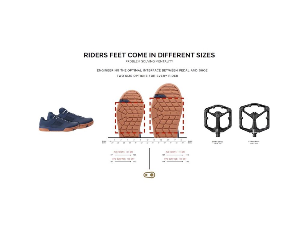 Špičkový platformový pedál ve dvou velikostech pro různě velké velikosti bot. Minimální profil 11-13 mm. VÁHA 375 g PLATFORMA hliník 6061-T6 (114 x 111 mm, pro velikost bot 43-49) OSA Cr-Mo ocel 435 VNITŘNÍ LOŽISKO Igus LL kluzné pouzdro VNĚJŠÍ LOŽISKO Igus LL kluzné pouzdro PINY 10 na každé straně, vyměnitelné TESTY V MÉDIÍCH: http://www.bikeandride.cz/2016/11/pedaly-crankbrothers-stamp-large-prakticke-predstaveni/Doplňkové parametry