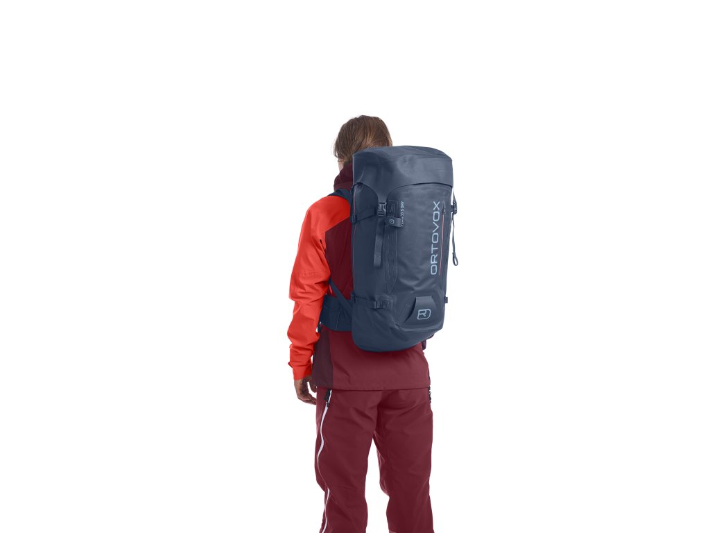 Technický, objemný a opravdu nepromokavý batoh, na který připevníš velké množství vybavení od trekových holí, přes lano, helmu, cepíny až po lyže. Když přijde nepříznivé počasí, tvé věci jsou díky nepromokavému materiálu (více než 50 000 mm) v bezpečí. Možnost dostat se až na 1100 g hmotnosti ocení každý, komu záleží na nízké hmotnosti a nechce přijít o důležité funkční prvky. Ergonomický zádový systém FULL CONTACT LIGHT BACK SYSTEM je velmi komfortní a mají ho jen modely ORTOVOX PEAK DRY a ASCENT. Praktická je možnost odepnutí vrchního víka, bederního popruhu, vstup z boku, kapsa na lavinové vybavení či integrovaná síťka na helmu.