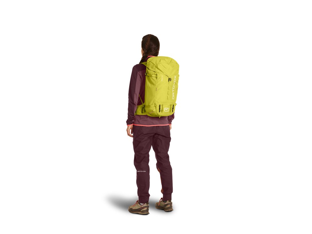 Extrémně lehký batoh ORTOVOX TRAD 33 S je navržen pro horolezce. Podle toho je i výše posazené těžiště. S hmotností se dostaneš na pouhých 825 g. Minimalistický kompaktní design umožňuje pohyb po skále bez nechtěného zachytávání. Při nástupu či sestupu zase oceníš možnost důmyslného uchycení lezeckého materiálu.