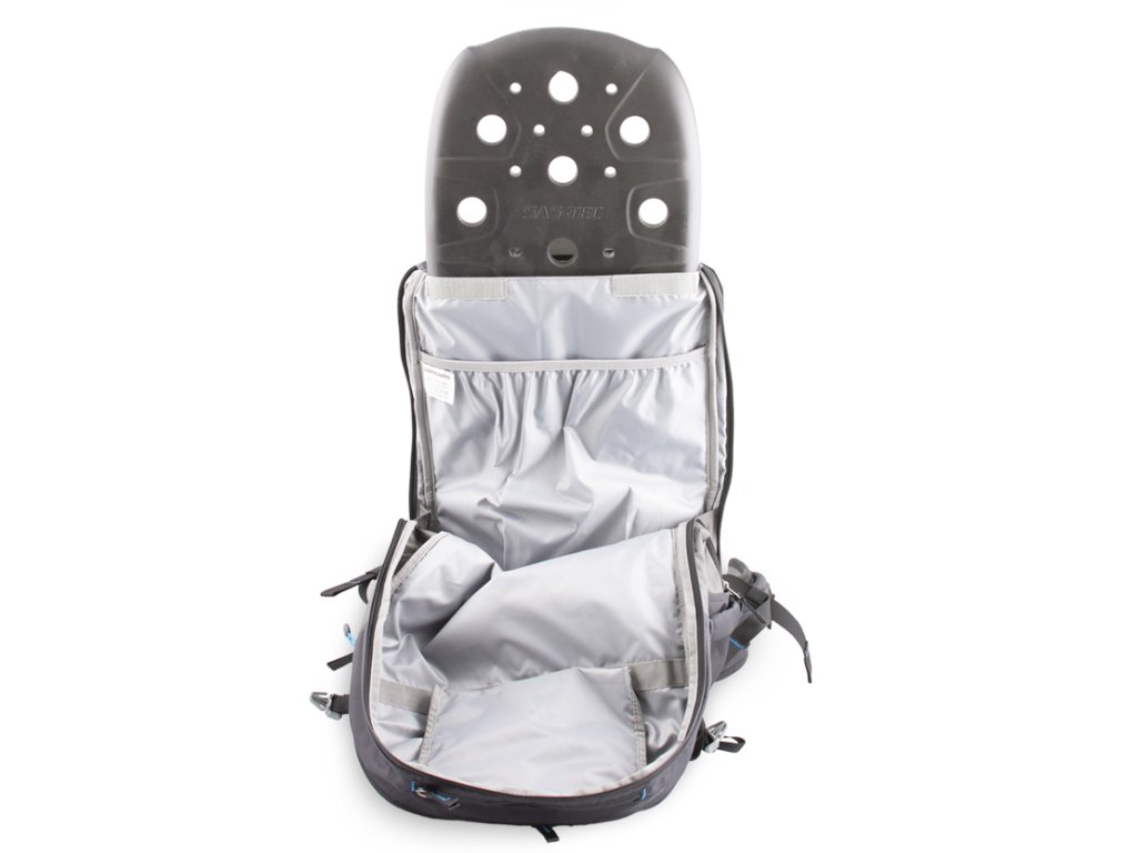 Zádovou desku je možné zaměnit za SAS-TEC SCA 500, certifikovaný chránič zad, a z batohu tak vytvořit nekompromisní freeridovou zbraň.