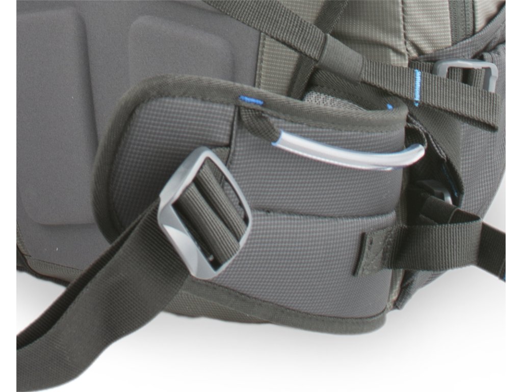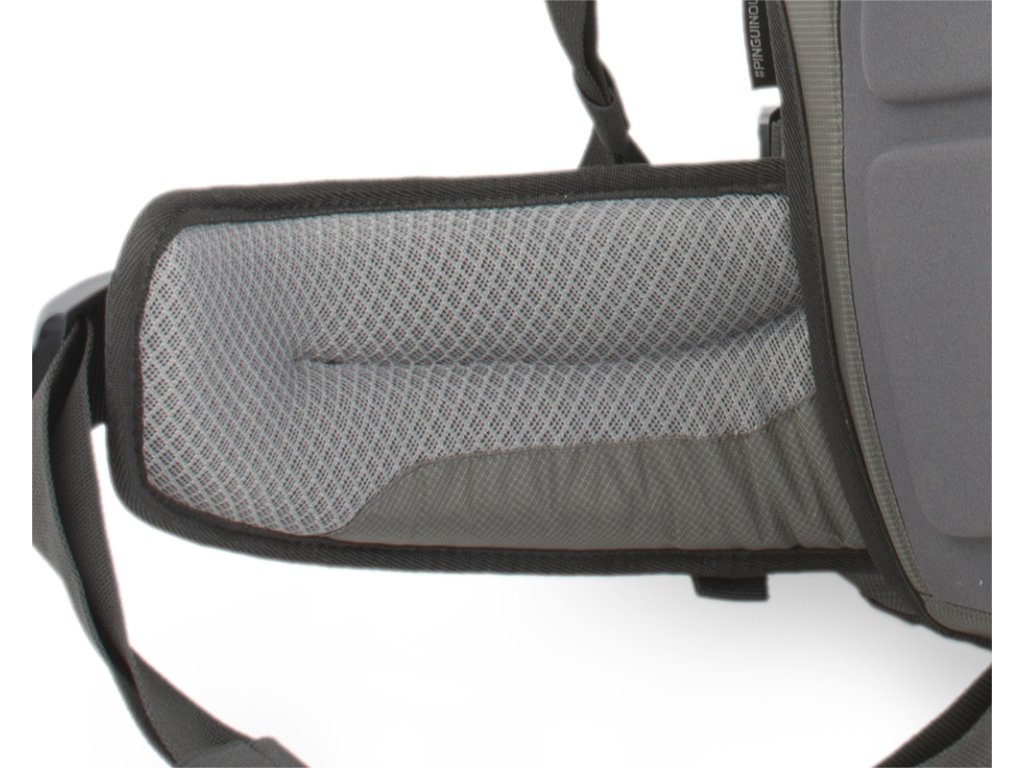 Odnímatelný, solidně polstrovaný bederní pás s bočními balančními popruhy a širokým popruhem s boční regulací pro jeho snadné dotažení.