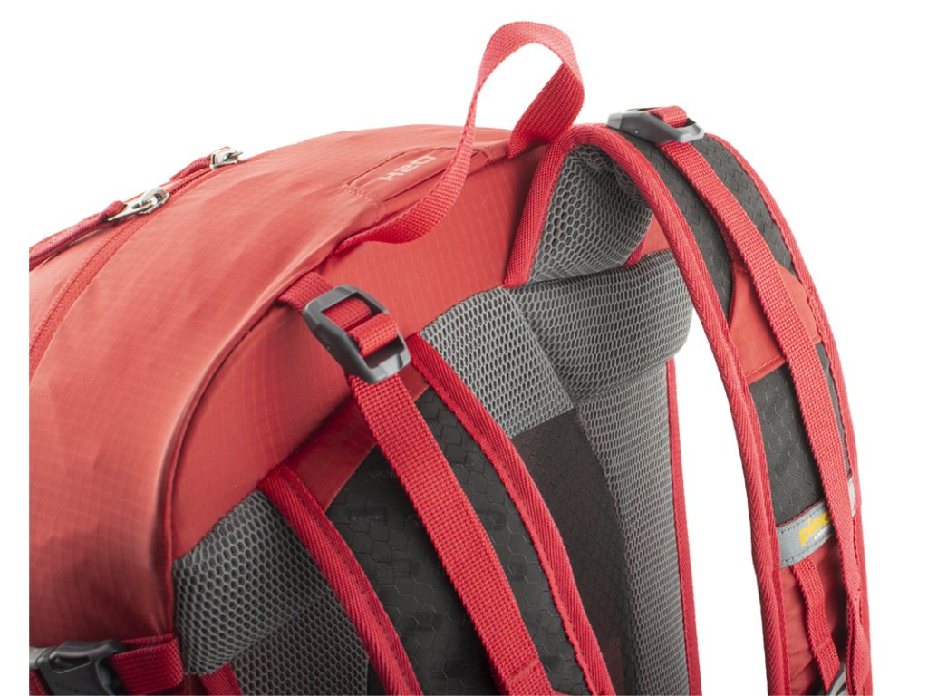 Ramenní popruhy se zesíleným polstrováním v ramenní části pro ještě větší komfort při transportu těžkého nákladu jsou v horní části perforované pro zvýšení prodyšnosti.
