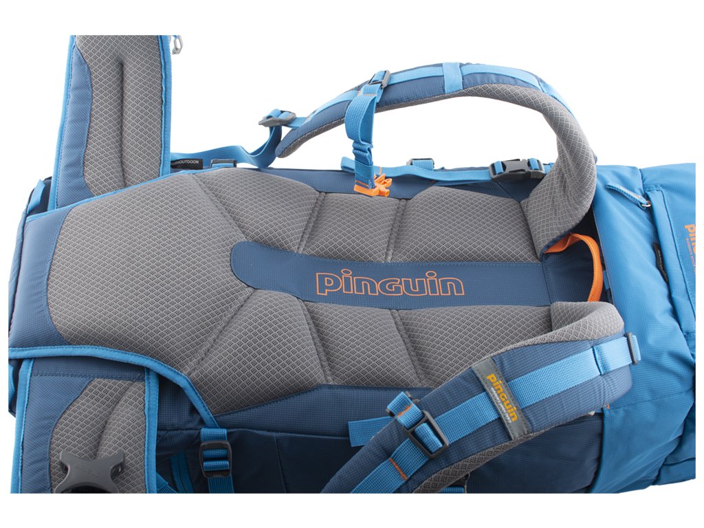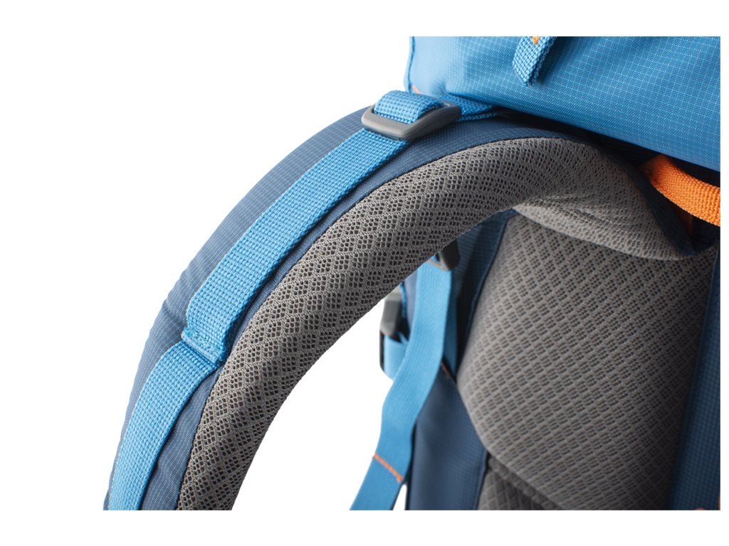 Pevné ramenní popruhy se zesíleným polstrováním pro zachování komfortu i při transportu těžkého nákladu. Výstup na hadici vodního vaku mezi ramenními popruhy. Balanční popruhy v horní části ramenních popruhů a na bocích bederního pásu pro dokonalé usazení batohu na zádech a eliminaci jeho pohybu při chůzi. Záda batohu jsou vyztužena vyjímatelnou HDPE deskou s integrovanou duralovou výztuží, která pomáhá rozložit hmotnost přepravovaného nákladu na záda a eliminuje tlaky přepravovaných předmětů do zad. Pohodlný, šitý zádový systém s polštářky potaženými 3D mesh prodyšnou textilií zajišťuje efektivní odvětrání zad při zachování optimálního rozložení nákladu.