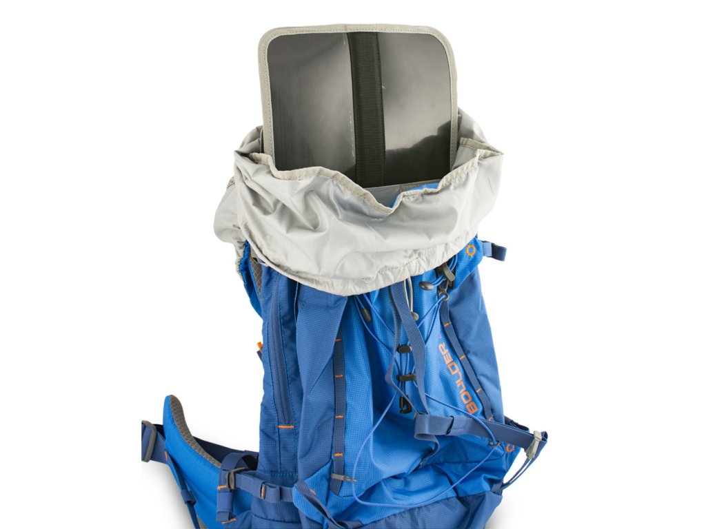 Záda batohu jsou vyztužena vyjímatelnou HDPE deskou s integrovanou duralovou výztuží, která pomáhá rozložit hmotnost přepravovaného nákladu na záda a eliminuje tlaky přepravovaných předmětů do zad.