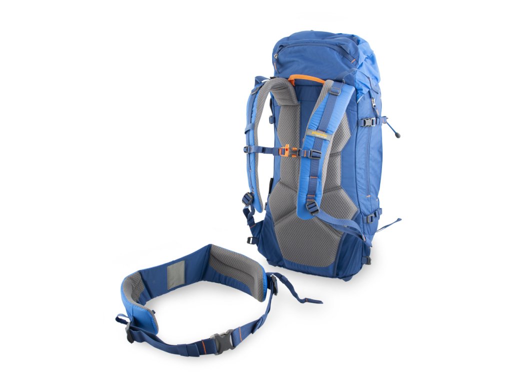 Odepínatelný bederní pás pomáhá efektivně rozložit hmotnost přenášeného nákladu mezi boky a záda.