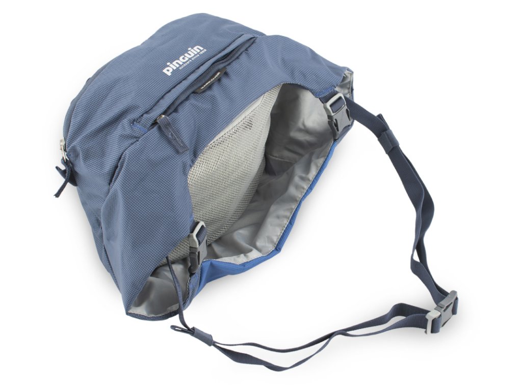 Síťovaná zipová kapsa na vnitřní straně víka na cennosti s karabinkou na klíče. Středový kompresní popruh pod víkem.