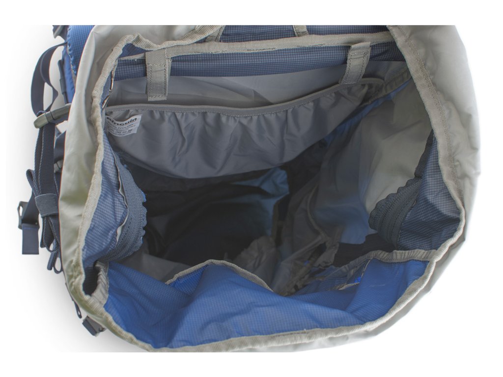 Zip spodní komory je jištěn párem popruhů s možností připevnění dodatečného materiálu (např. stan). Vnější zipová kapsa na víku vhodná k uložení rychle dostupného vybavení (např. lékárny nebo potravy).