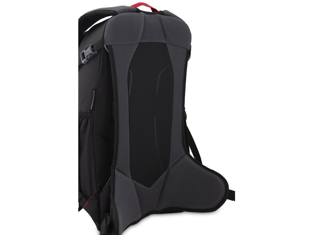 Velmi pohodlný, odvětraný zádový systém AVBS kombinující pevnou síťovinu s 3D mesh panely, umožňující maximální odvětrání zad při zachování optimálního rozložení nákladu. Předpětí zádového systému drátěným rámem.