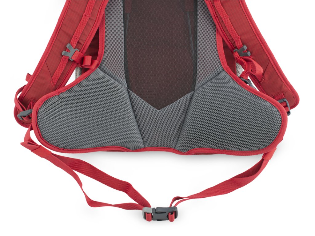 Bederní popruh s centrálními křidélky pro pohodlné usazení batohu na zádech a eliminaci jeho pohybu.