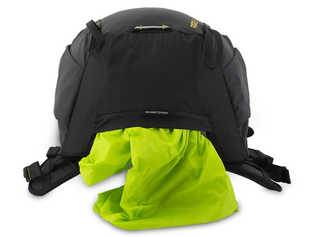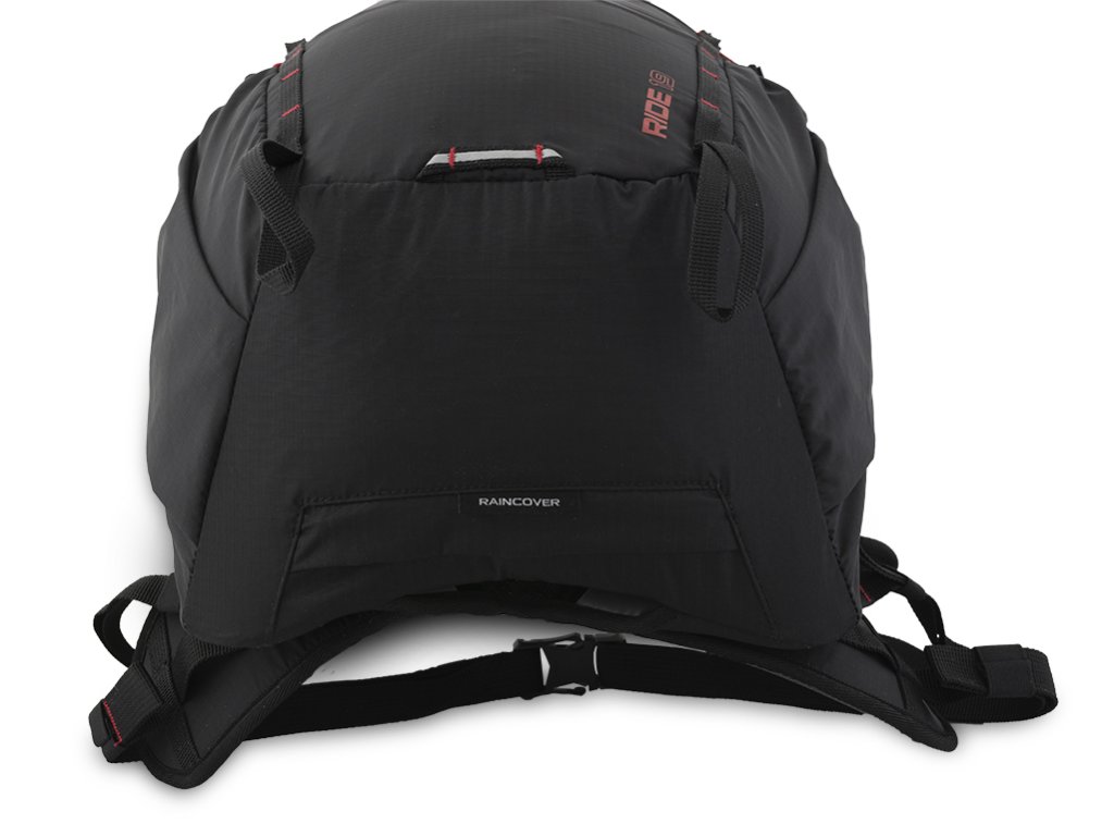 Pár vertikálních řetízků na čele batohu s možností připevnění dodatečného vybavení. Výrazná pláštěnka v samostatné zipové kapse na dně batohu. Umístění kapsy umožňuje využít kapsu pro transport pouzdra na nářadí.