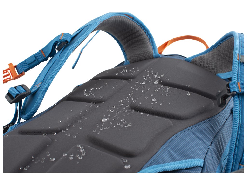 Výstup na hadici vodního vaku v horní části batohu mezi ramenními popruhy. Uvnitř hlavní komory se nachází přepážka oddělující vodní vak od dalšího převáženého vybavení.