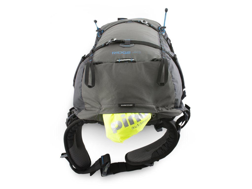 - Výrazná pláštěnka v samostatné zipové kapse na dně batohu.