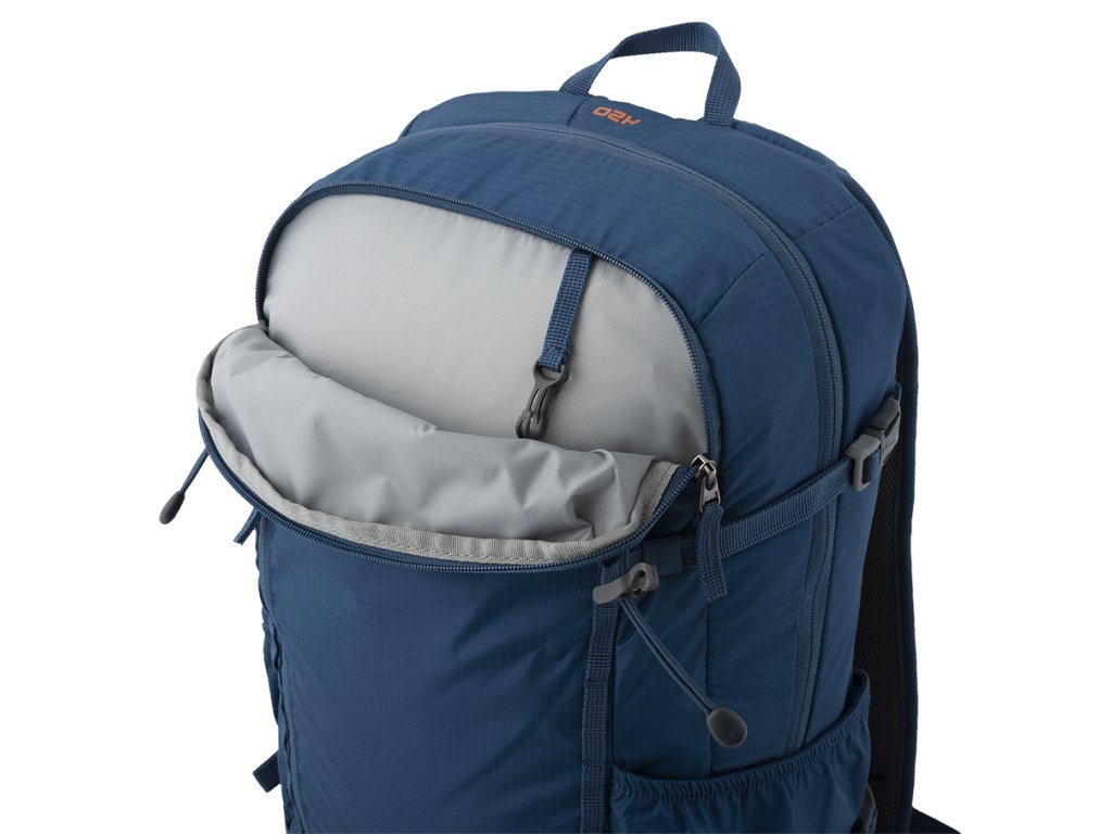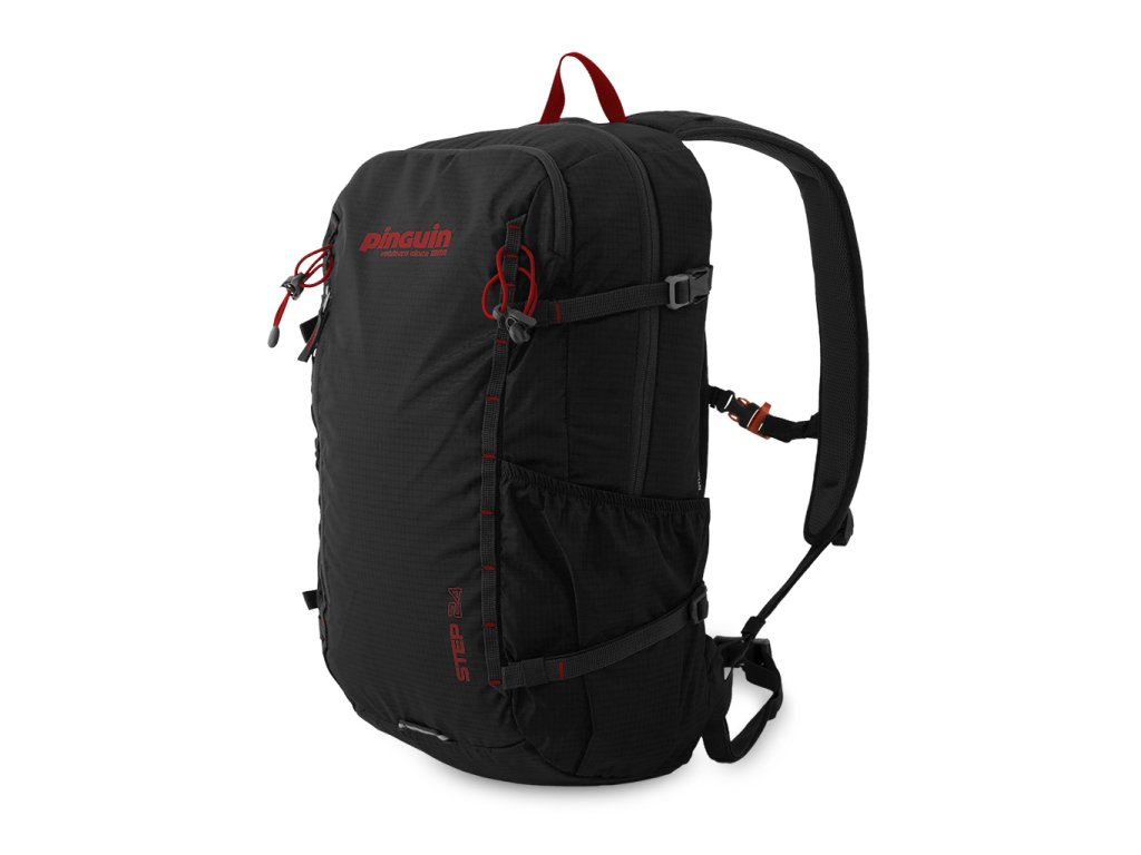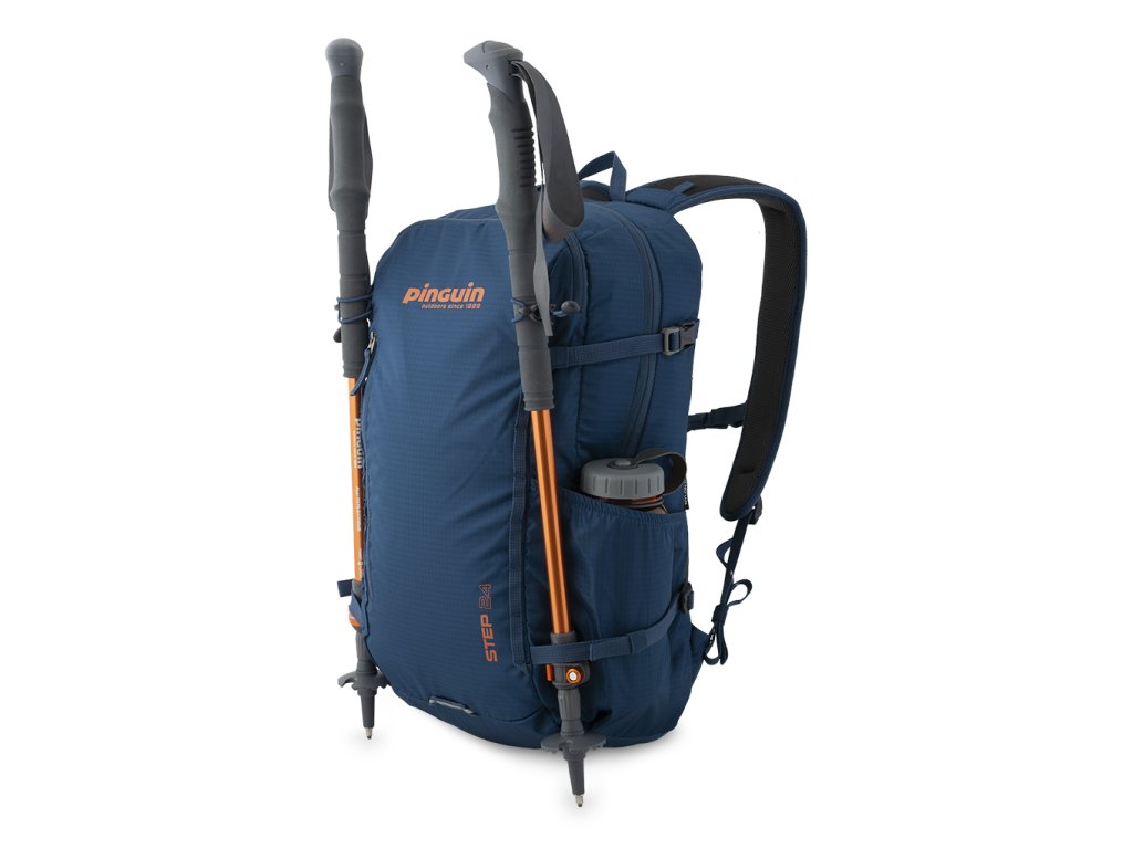 Možnost připevnění trekových holí vložením jejich rukojetí do vnějších síťovaných kapes a zajištěním pruženkou s háčkem.