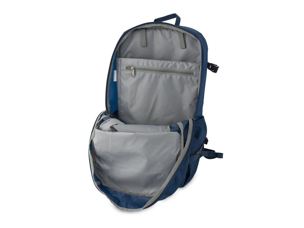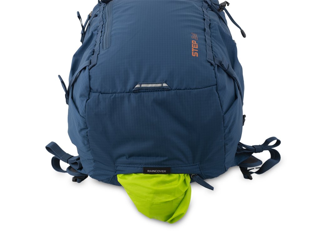 Výrazná pláštěnka v samostatné zipové kapse na dně batohu.