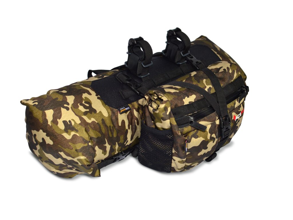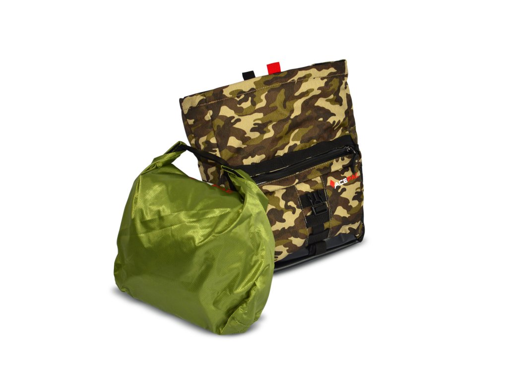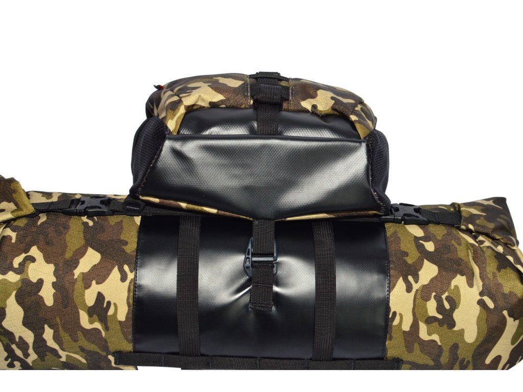 Použitý hlavní materiál Cordura Ecomade Ripstop (PU zátěr 1500 mm H2O), odolná tkanina vyrobená z recyklovaných PET lahví. Součástí brašny je vyjímatelná vodotěsná vložka ( zátěrovaná Nylon ripstop textilie, PU 5000 mm s podlepenými švy ), která zaručeně udrží převážený obsah brašny v suchu.