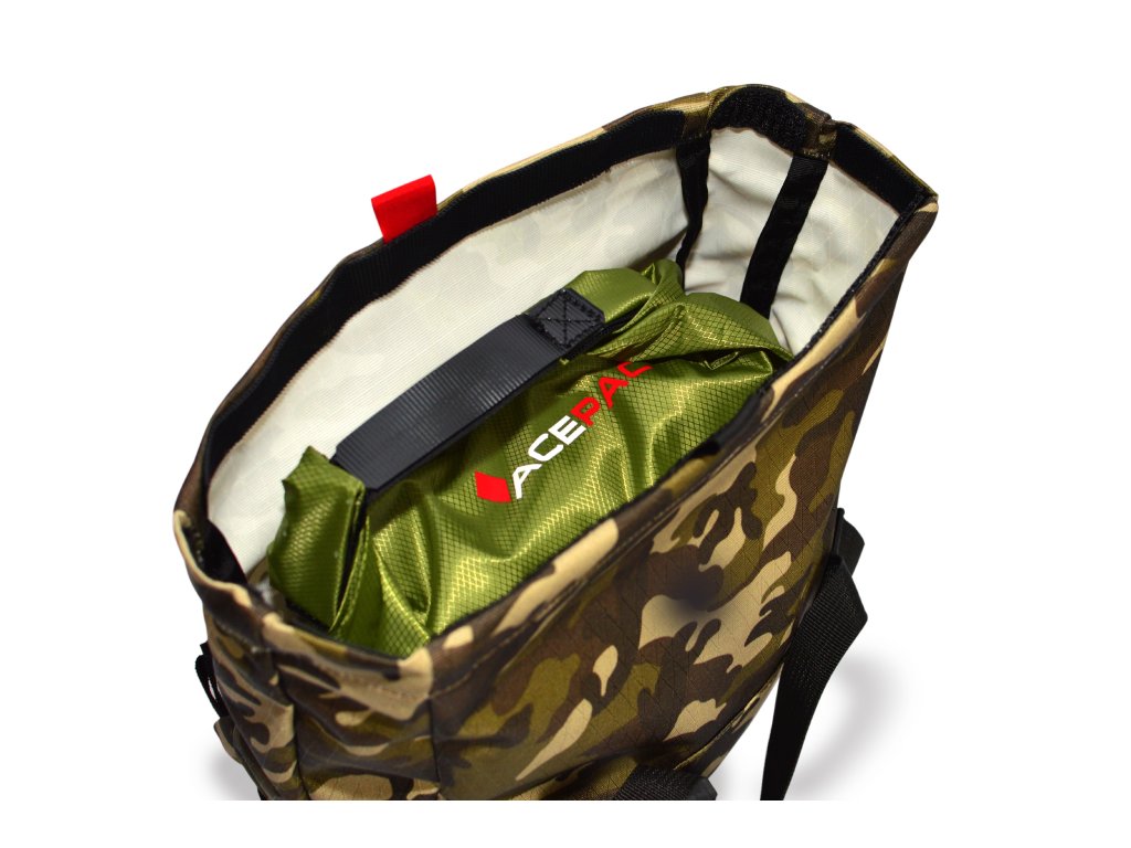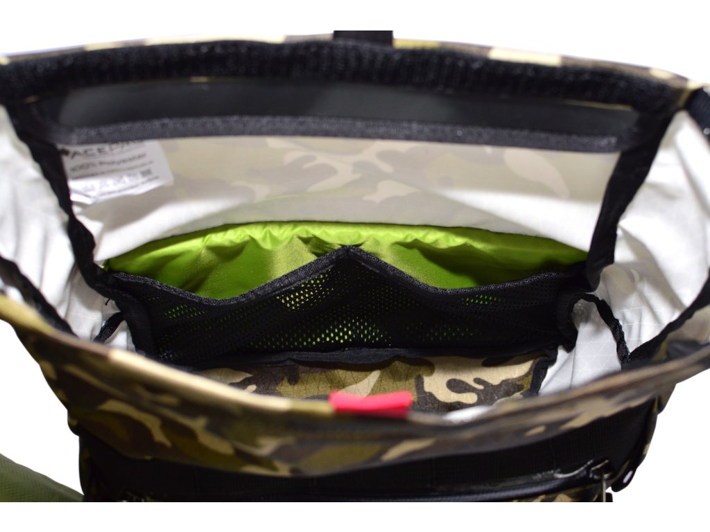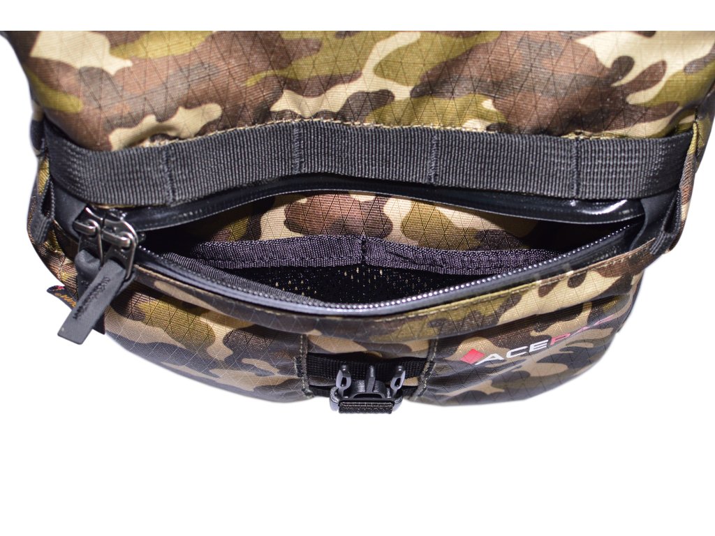 Uvnitř hlavní komory brašny je skrytý síťovaný pořadač. Boční síťované kapsy na brašně např. k odkládání obalů od energetických tyčinek. Udržujme traily čisté!