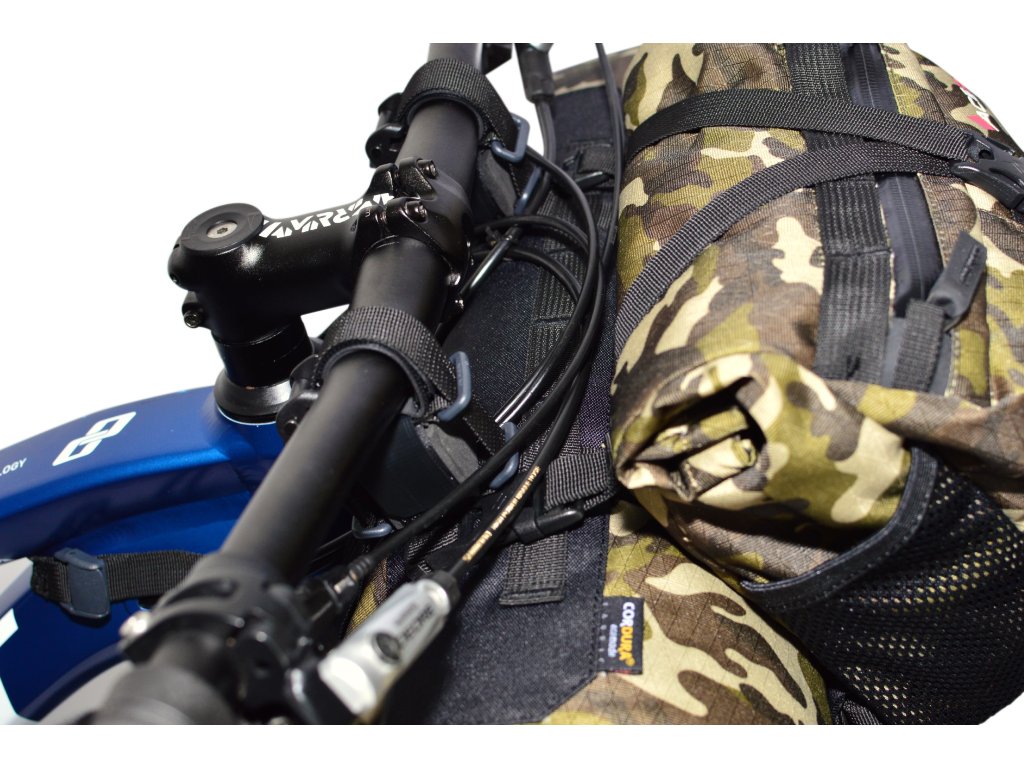 Brašna se montuje na válcovou brašnu Bar Roll nebo Bar harness (dodáván samostatně), nebo jí lze připnout přímo na řídítka.