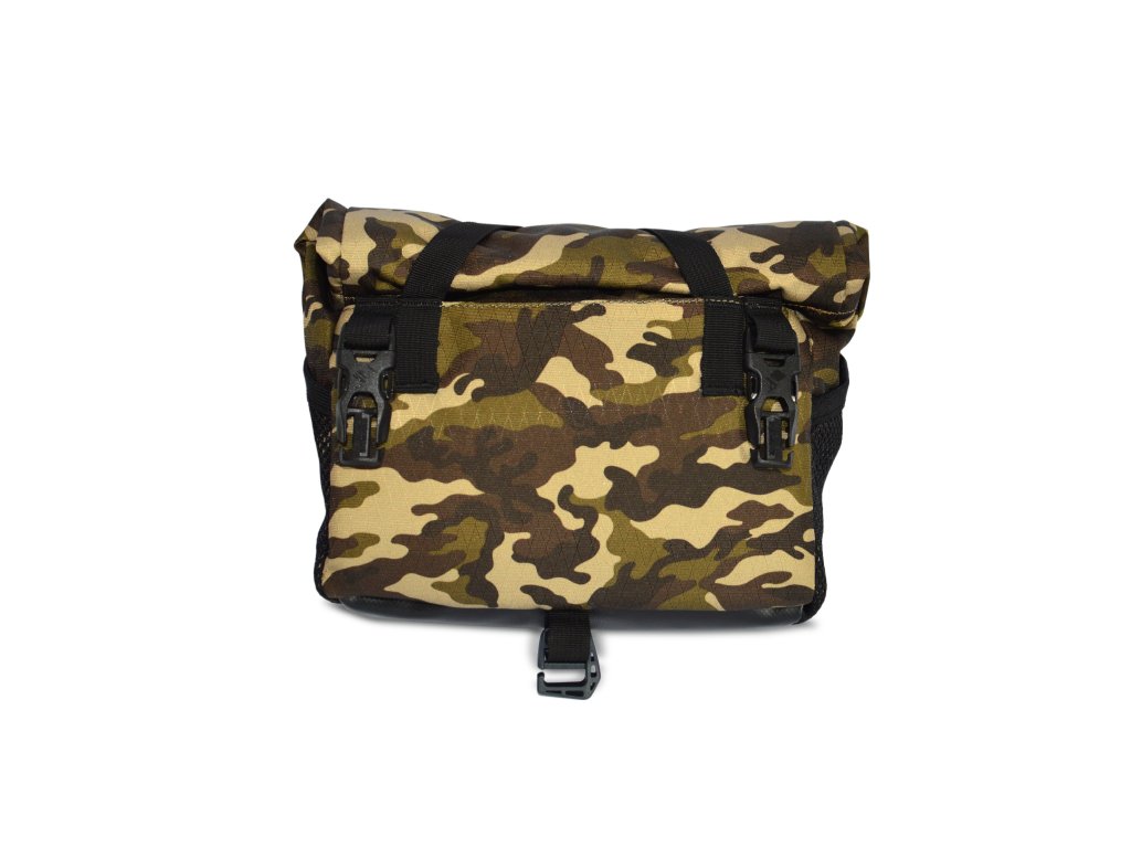 Dolní část brašny kde dochází k nanášení nečistot z jízdy ze snadno udržovatelného, oboustranně zatřeného materiálu Tarpaulin.