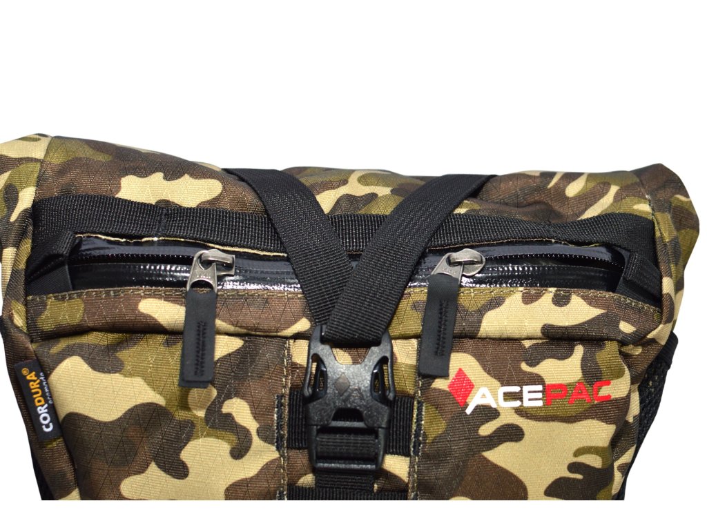 Čelní zipová kapsa s vnitřním pořadačem je uzavřena vodotěsným zipem YKK se dvěma jezdci a umožňuje snadnější přístup k často používanému obsahu brašny. Taháčky zipů jsou vyrobeny z odolného a nesmekavého materiálu Hypalon.