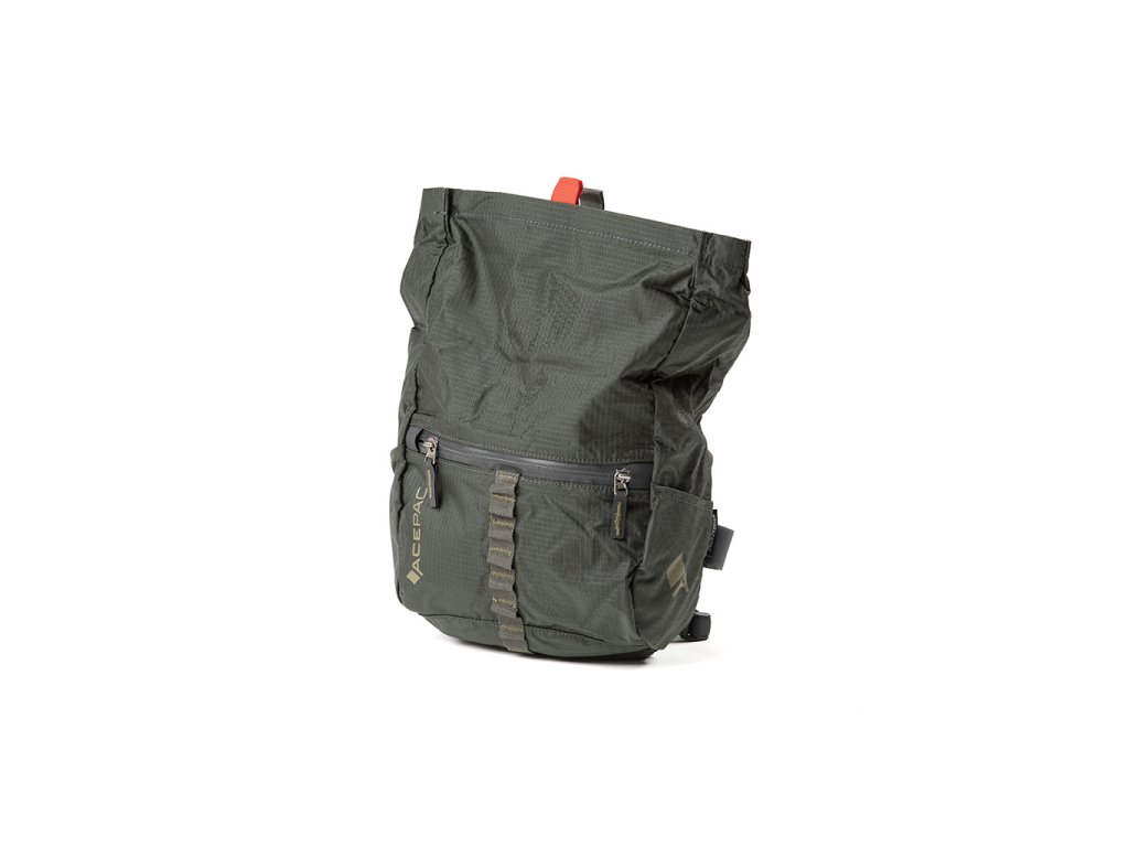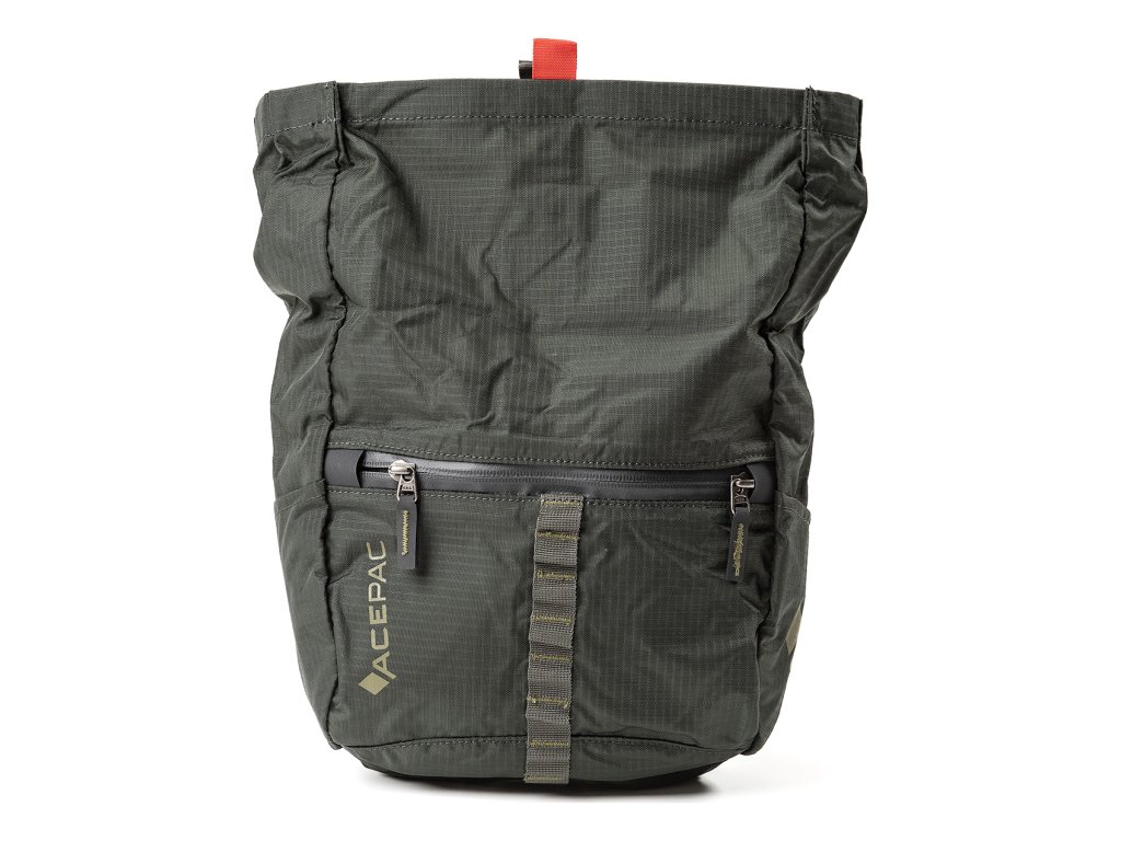 Čelní zipová kapsa je uzavřena vodotěsným zipem YKK se dvěma jezdci a umožňuje snadnější přístup k často používanému obsahu brašny. Taháčky zipů jsou vyrobeny z odolného a nesmekavého materiálu Hypalon.