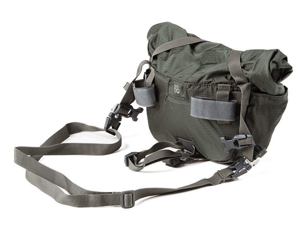 Brašna se montuje na válcovou brašnu Bar Roll nebo Bar Harness (dodávány samostatně), nebo ji lze připnout přímo na řídítka.
