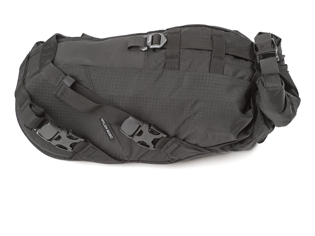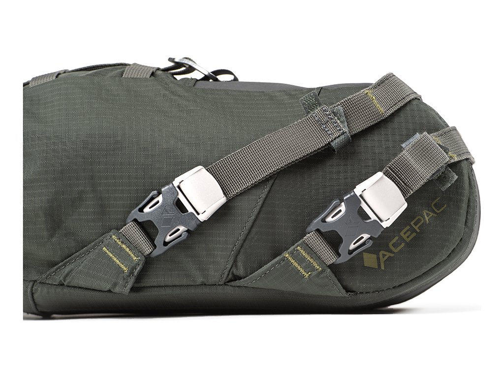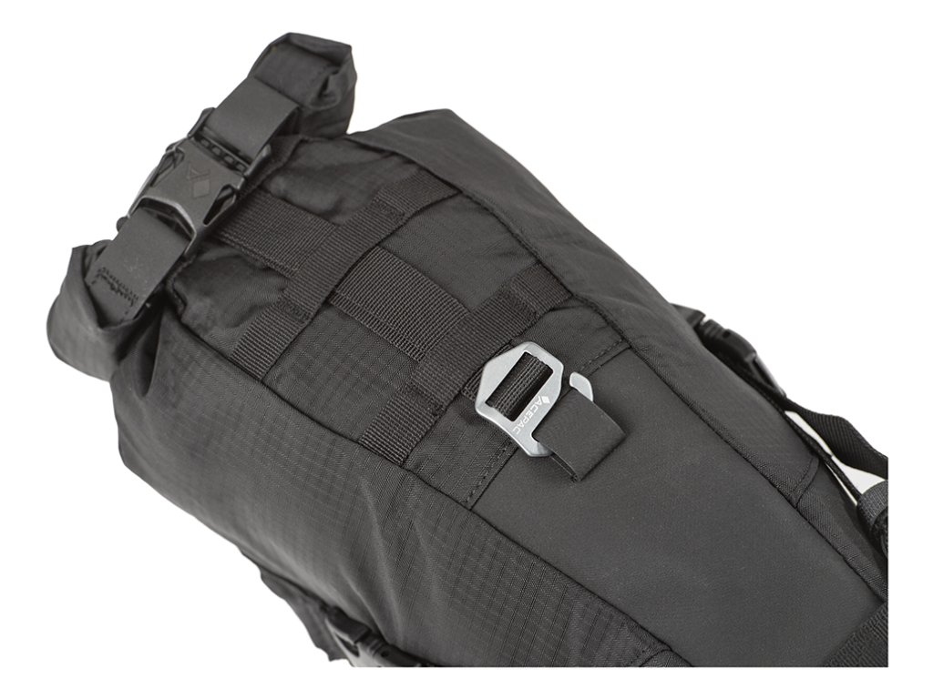 Popruh kolem sedlových vzpěr je polypropylenový, pošitý Hypalonem pro zaručení maximální možné fixace a eliminaci pohybu brašny na vzpěrách. Zámky Camlok zamezující možnému prokluzování popruhu jsou opatřeny Značkové spony Nifco (-20°C), díky kterým se s brašnami dá snadno manipulovat i v rukavicích, jsou opatřeny zámky Camlok. Ty zamezují možnému prokluzování popruhů. Ve středu se nachází kompresní popruh s hliníkovým háčkem. V horní části brašny je pak umístěno 5 popruhů (každý se 3 poutky) pro připevnění dodatečného vybavení a blikačky. Namáhané švy jsou pojištěny tzv. Bartack stehem (cikcak). Všechny použité nitě jsou polyesterové s velkým průměrem vlákna pro maximální pevnost.