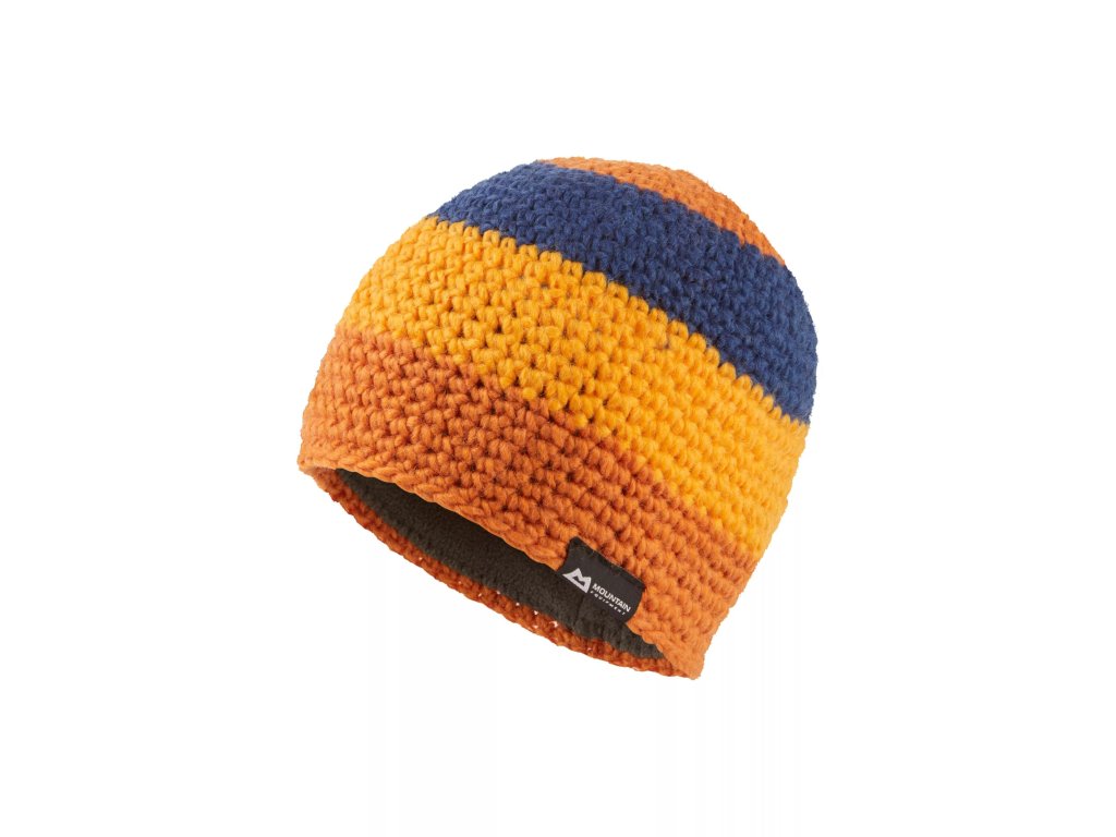Teplá čepice z háčkovaného úpletu s různobarevnými pásy. Na vnitřní straně je našita čelenka ze 100% recyklovaného fleecového materiálu, který čepici dodává ještě větší hřejivost a komfort. Také dobře saje pot a je příjemná i při aktivním pohybu.