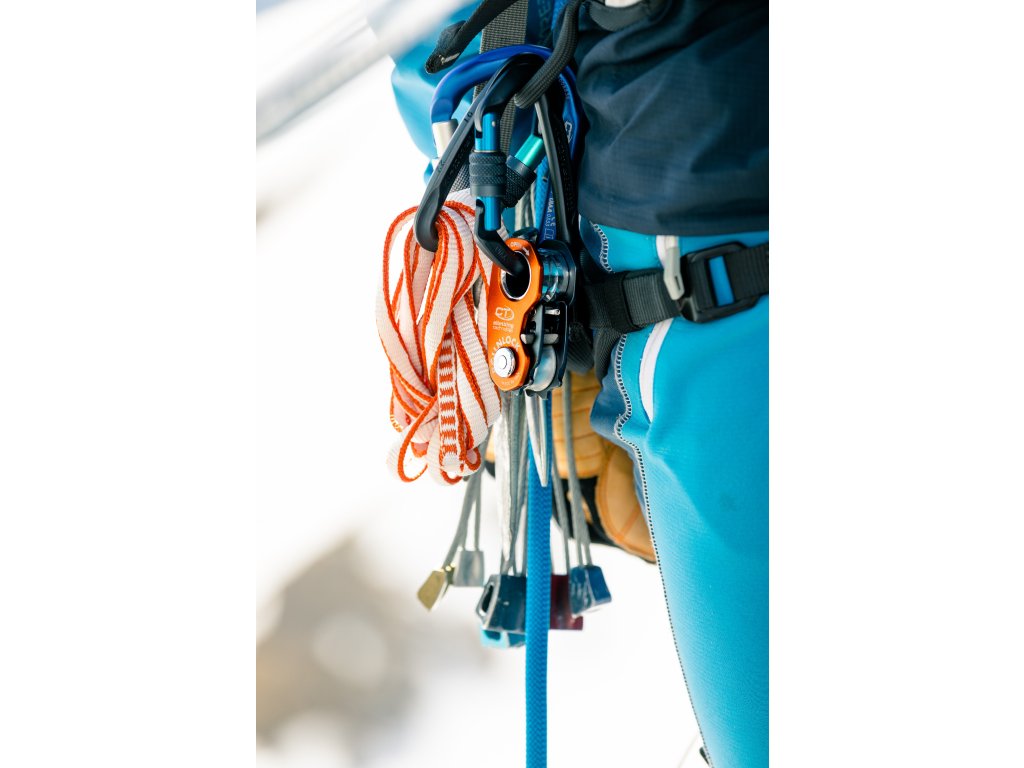 Na spodní karabině nalezneš gumový upevňovací prvek FIXIT, který fixuje karabinu v smyčce tak, aby se během používání nepohybovala a případně neotáčela, což by mohlo zapříčinit opotřebení/opálení smyčky.