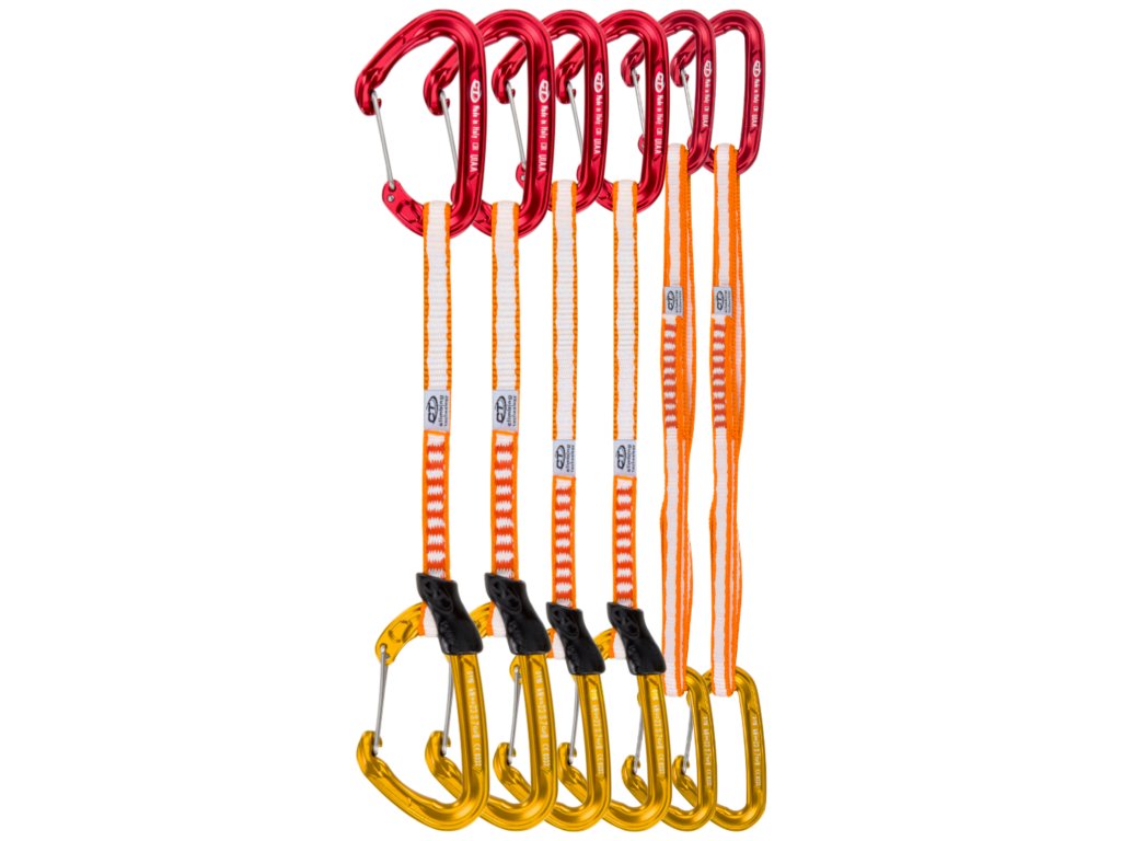 Sada šesti ultralehkých a kompaktních krátkých expresek do hor. Dvě expresky o délce 17 cm, dvě o délce 22 cm a dvě o délce 60 cm. Ideální pro vícedélkové sportovní i tradiční lezení, prostě tam, kde počítáš každý gram. Expresku tvoří dvě ultralehké karabiny s drátěným zámkem pro snadné cvakání a vycvakávání lana, a ultralehká vysoce odolná smyčka z materiálu dyneema.