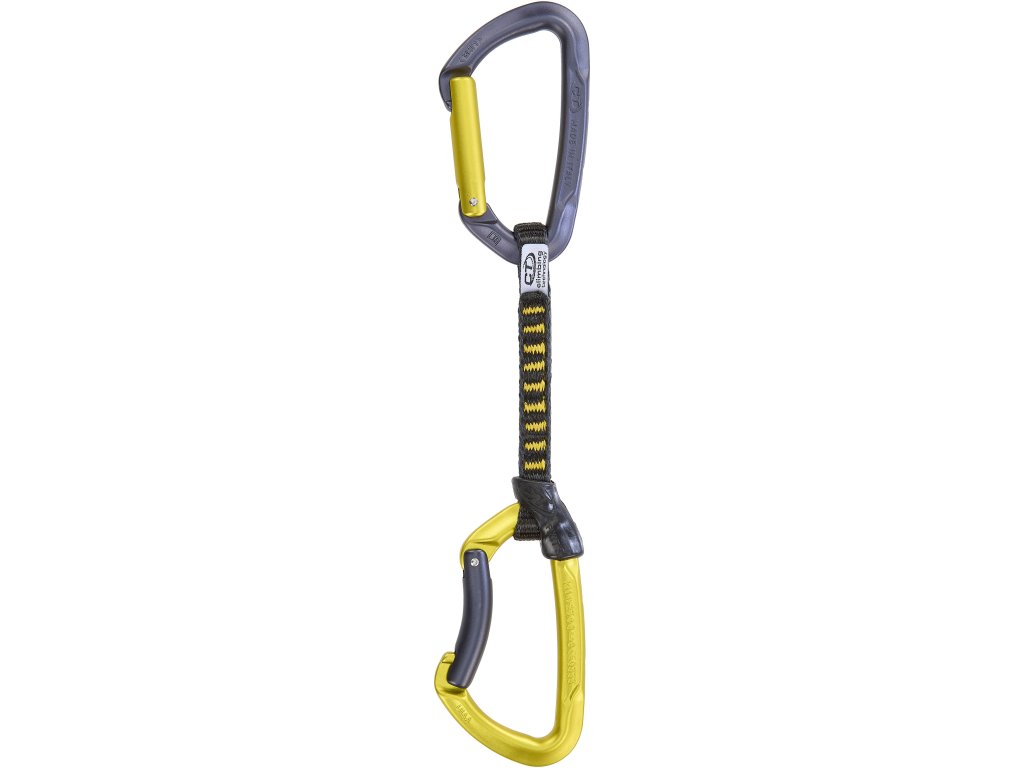 Karabiny spojuje lehká a odolná prošitá smyčka z materiálu dyneema o šířce 11 mm a délce 12, 17 nebo 22 cm.
