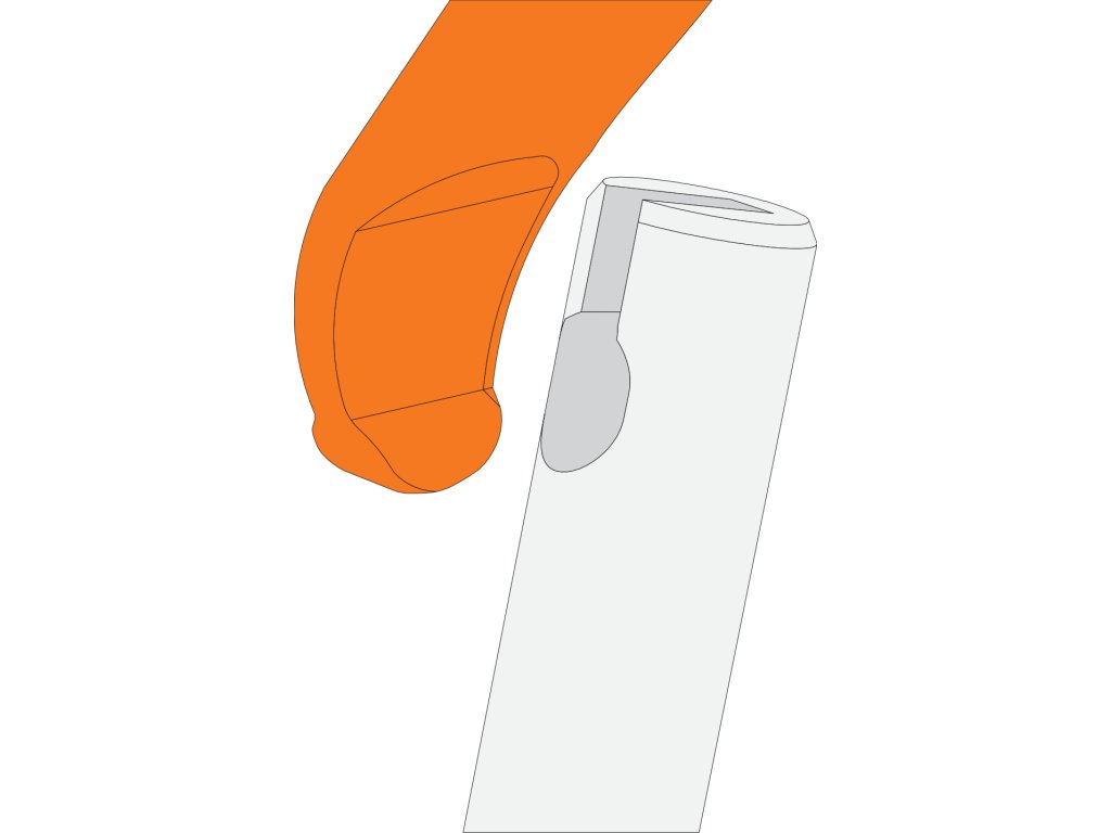- Verze s rovným zámkem má ergonomický profil se svislými otisky pro lepší úchop při cvakání karabiny.
