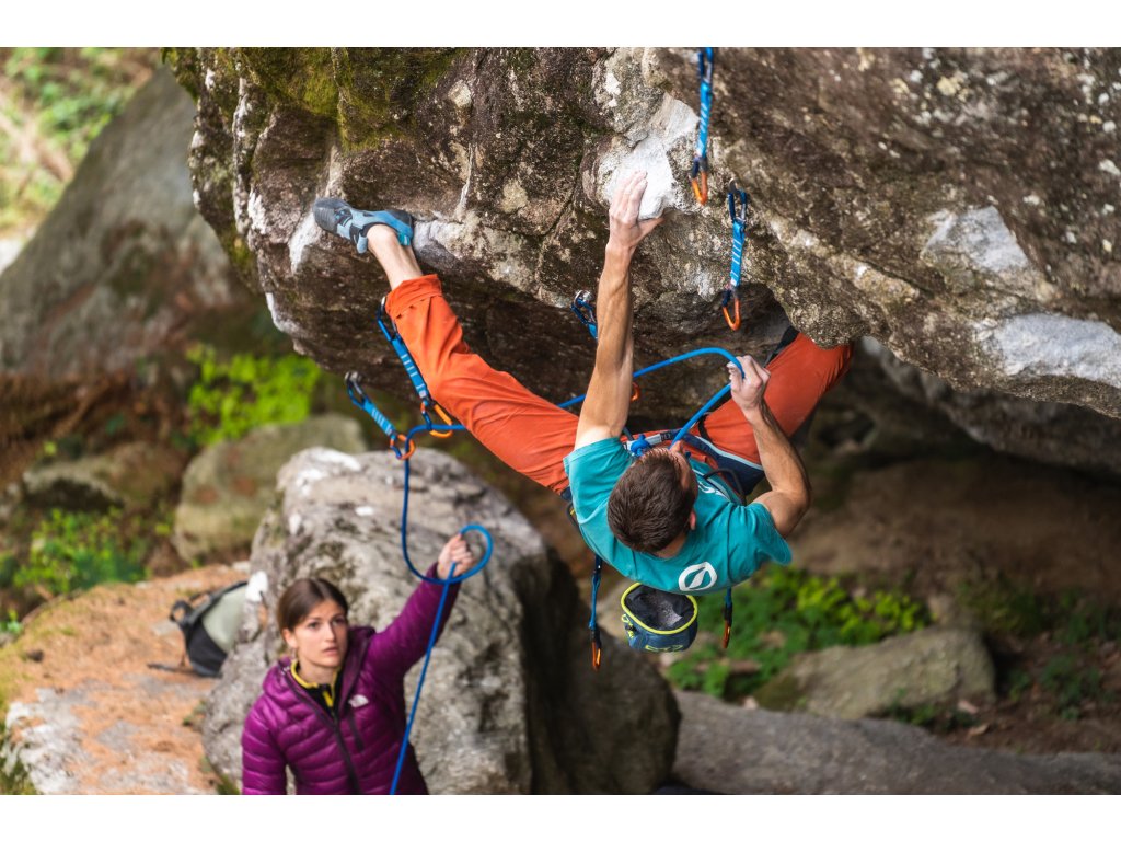 Na spodní karabině naleznete gumový upevňovací prvek FIXIT, který fixuje karabinu ve smyčce tak, aby se během používání nepohybovala a případně neotáčela, což by mohlo zapříčinit opotřebení/opálení smyčky.