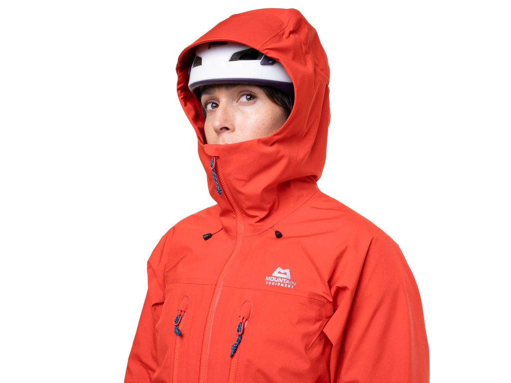 Je ta nejpropracovanější kapuce z nabídky Mountain Equipment. Je dostatečně veliká, aby komfortně seděla a dokonale pokryla hlavu i s přilbou. Nebudeš mít problém dokonce ani v kombinaci helma, péřovka, hardshellová bunda.