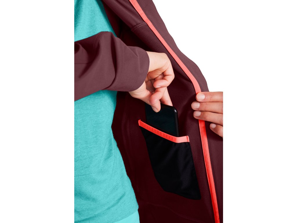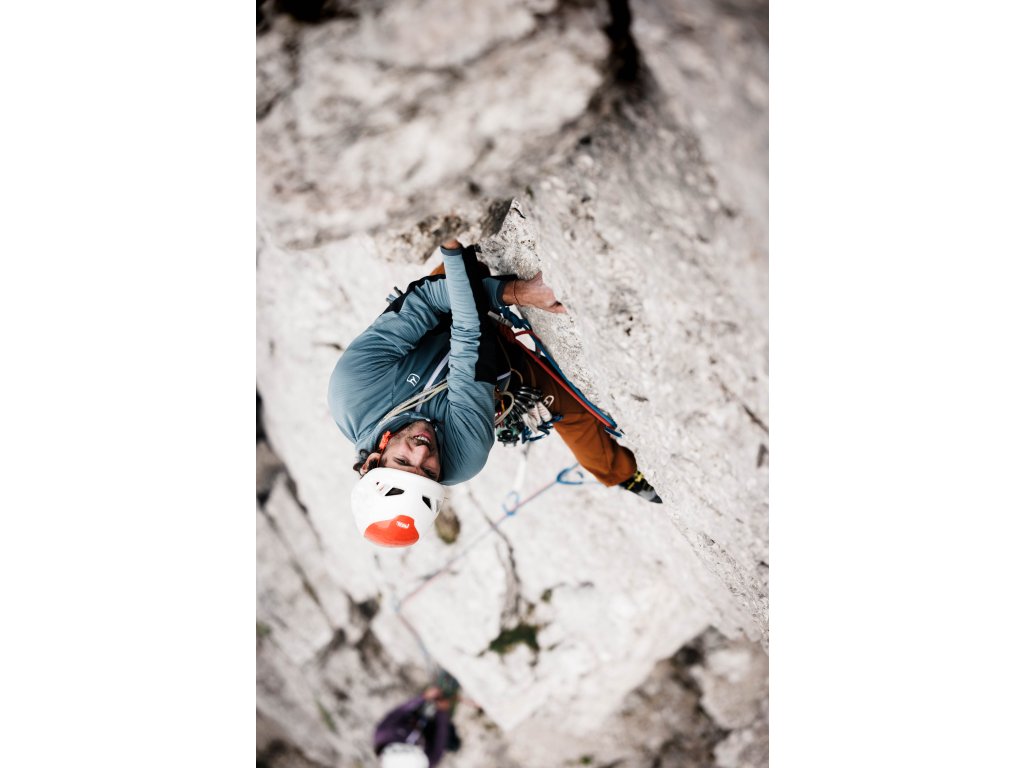 Bunda ORTOVOX PALA HOODED JACKET má atletický střih a při lezení poskytuje maximální svobodu pohybu a pružnost. Technické prvky jako je elastická kapuce, která se vejde pod helmu a pružný lem rukávu ji předurčují pro lezení. Bunda má dvě prostorné kapsy umístěné výše, aby se do nich dalo dostat i se zapnutým bederním pásem batohu nebo sedacím úvazkem. Má taky malou integrovanou kapsu na mobilní telefon z materiálu MERINO MESH.