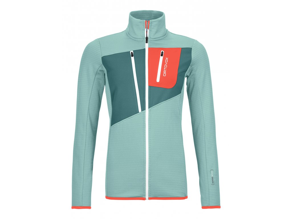 Dámská mikina ORTOVOX MERINO FLEECE GRID JACKET je skvělou volbou pro všechny horolezkyně i milovnice vysokohorské turistiky, které hledají lehké, prodyšné a zároveň odolné a dobře izolující oblečení pro náročné výpravy do hor.