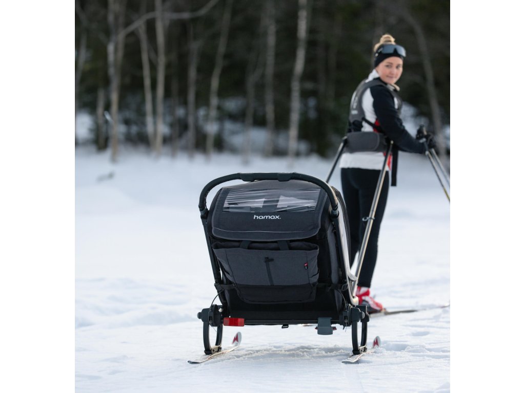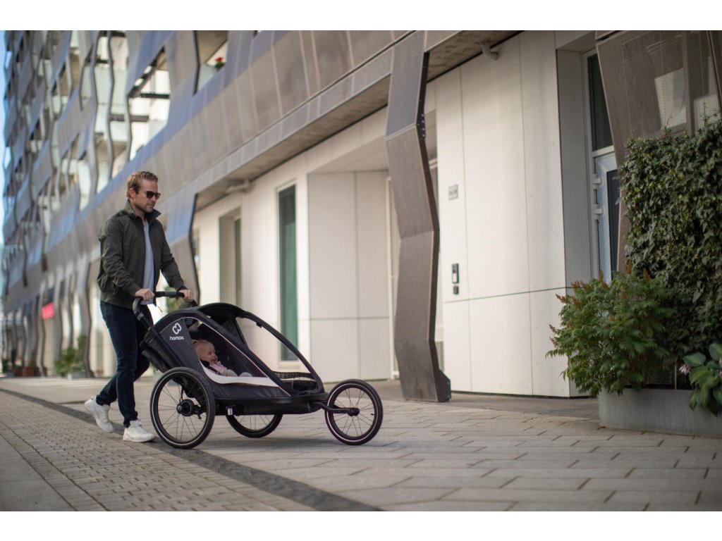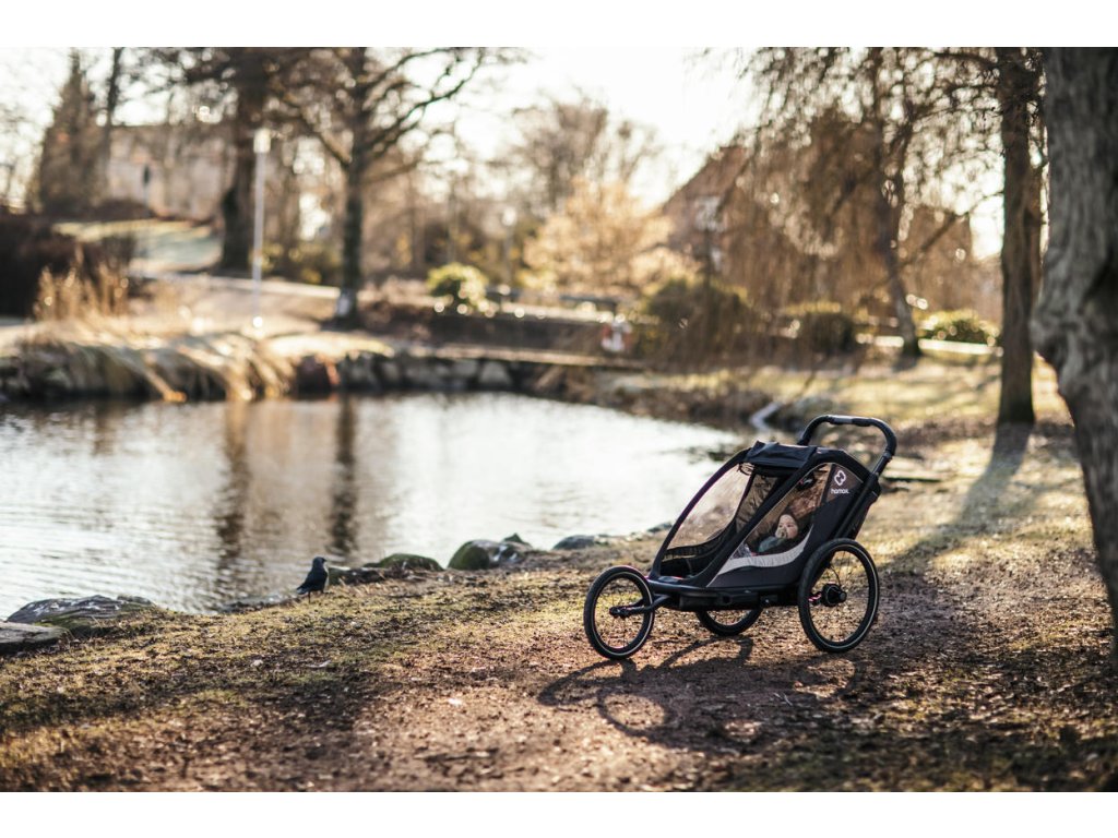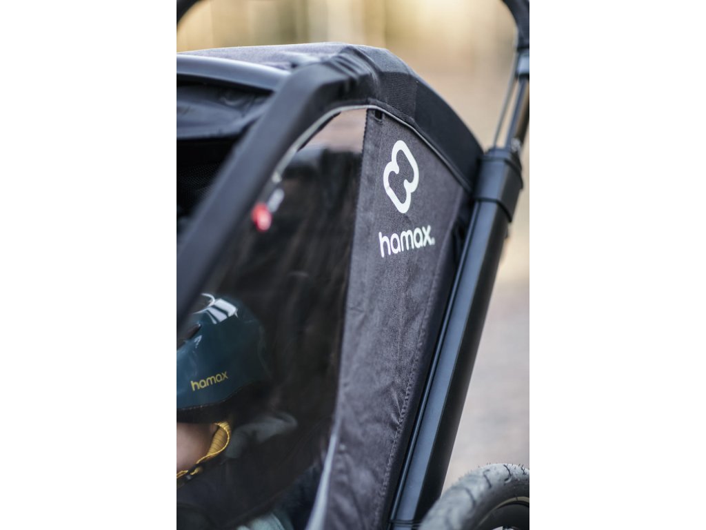 Jednomístný dětský vozík HAMAX Cocoon ONE je lehký a pohodlný cyklistický vozík pro aktivní rodiny. Vyniká pevnou konstrukcí, promyšlenou ergonomií a snadným ovládáním, díky čemuž zvládne městské cyklojízdy i delší výlety po zpevněných cestách. Velká okna nabízejí skvělý výhled, větrací panely zlepšují cirkulaci vzduchu a praktické prvky usnadňují každodenní používání.