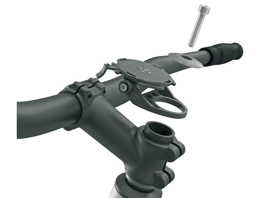 Vysoce kvalitní držák smartphonu je namontován pod stávající krytkou ježka na představci. Díky bajonetovému držáku lze mobilní telefon namontovat rychle a snadno jediným pootočením - v obou směrech. To znamená, že kokpit zůstává čistý a řídítka zůstávají volná. Držák mobilního telefonu s uchycením na představec také poskytuje ideální řešení pro použití systému COMPIT pro MTB kola a elektrokola s 35 mm řídítky. Má nastavitelný úhel.