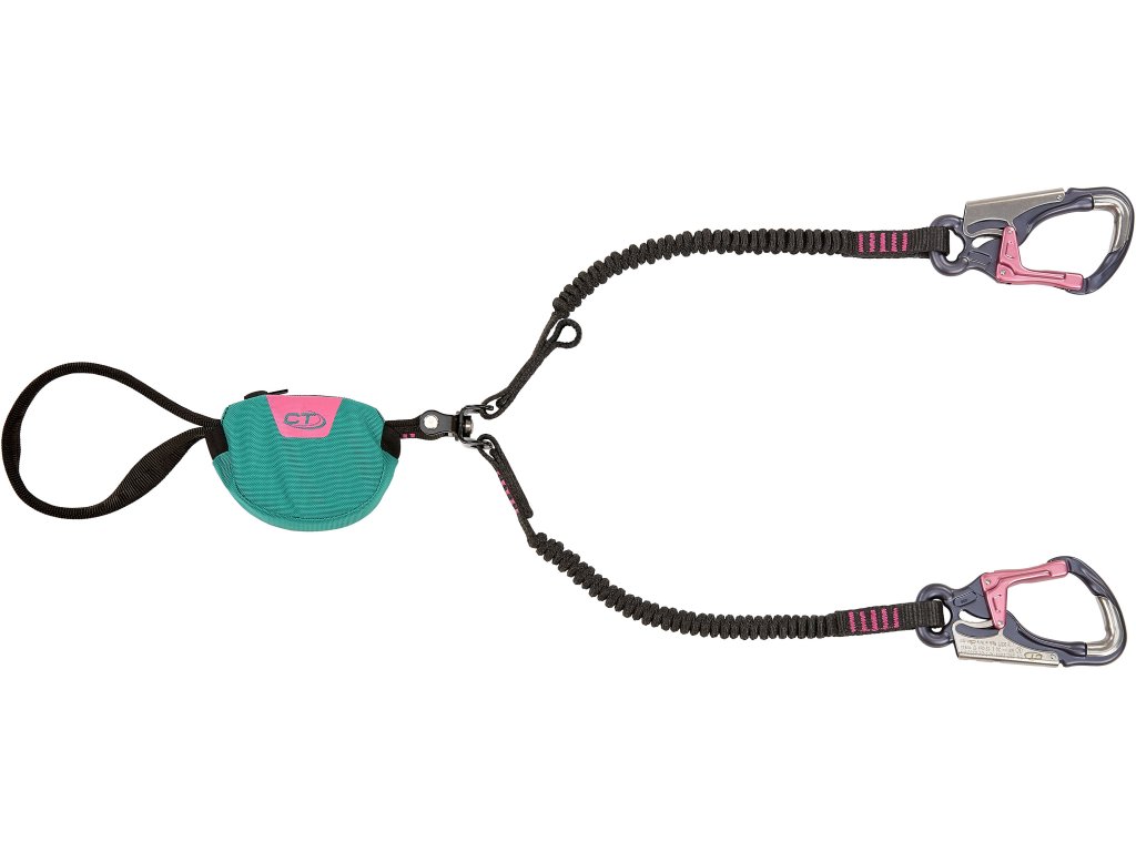 Dámský via ferrata set s integrovaným otočným konektorem vybaven progresivním patentovaným tlumičem pádu SLIDER. Kompaktní a lehký díky novým elastickým ramenům vyrobeným z vysokohustotního polyethylenu (HPDE). Mohou jej používat osoby s hmotností mezi 40 kg (bez vybavení) až 120 kg (včetně vybavení). Zvláště vhodné pro děti, teenagery a dospělé díky karabinám s ergonomickým úchopem.
