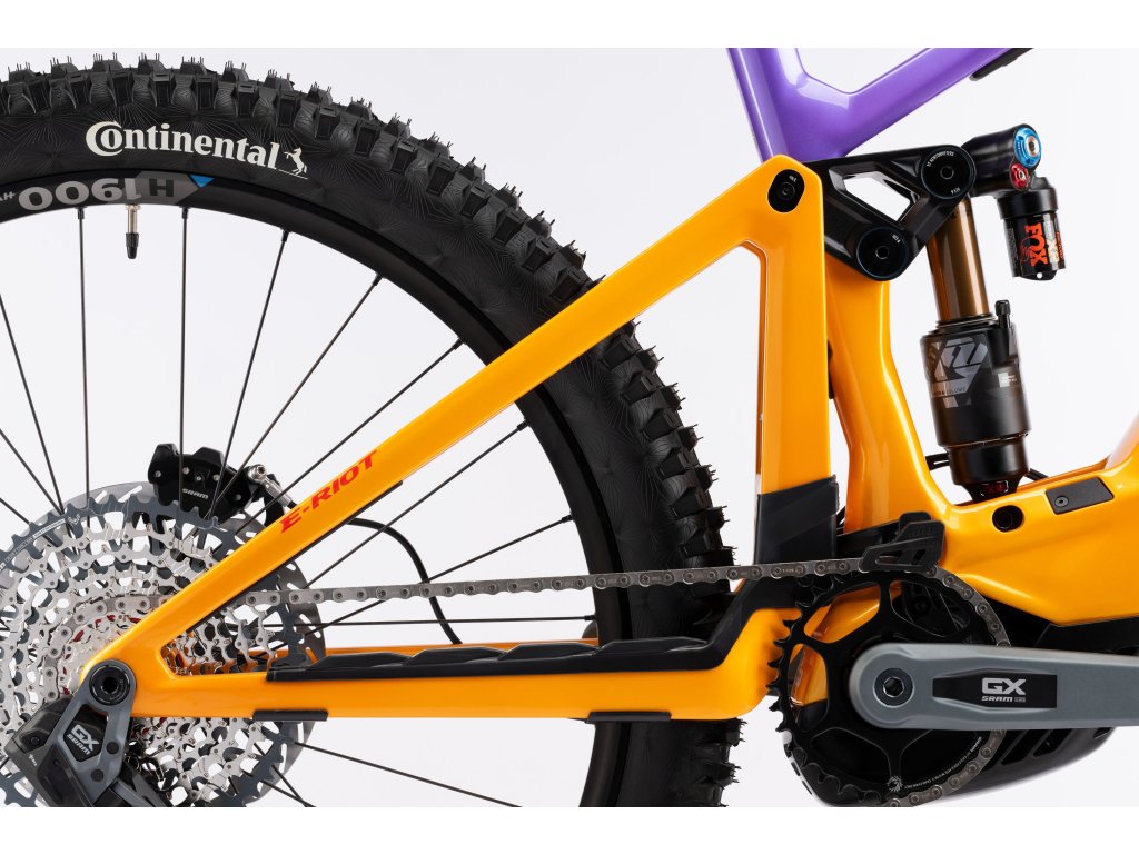 Každá verze E-RIOTu přichází s propracovanými detaily, které posouvají zážitek z jízdy na novou úroveň. Mezi ně patří systém přepákování Tractionlink 2.0 pro optimální trakci a odpružení, pevná, jednodílná zadní stavba z karbonu a koncept VPP (Virtual Pivot Point), který zajišťuje citlivější odezvu a lepší podporu ve středu zdvihu. Design odpružení s virtuálním otočným bodem (VPP) využívá systém přepákování, který vytváří „virtuální“ otočný bod pohybující se při kompresi odpružení, což optimalizuje dráhu zadního kola a efektivitu šlapání. Na rozdíl od konstrukcí s jedním otočným bodem umožňuje VPP zadnímu kolu následovat zpočátku dráhu nahoru a dozadu, což zlepšuje překonávání překážek, pohlcování nárazů a zajišťuje lepší trakci. Tento design zvyšuje stabilitu a kontrolu, snižuje zpětný ráz při šlapání (kickback) a je ideální pro technický terén. Mullet konfigurace, v kombinaci s novou vidlicí Rock Shox Zeb 3.1 nebo Fox 38 Grip X2 a plášti Continental Kryptotal, zajišťují, že E-RIOT zůstává sebejistý i v nejtvrdším terénu.