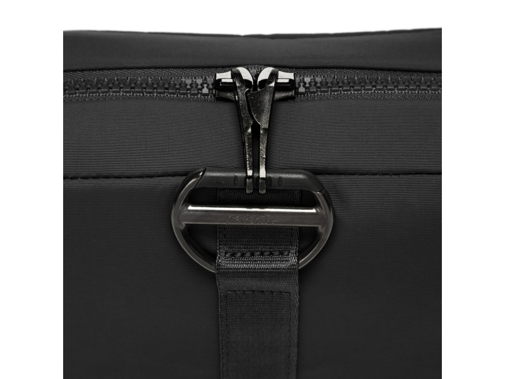 Menší horizontálně řešená kabelka s decentní bezpečniostní přeskou. Bez problémů pojme i 7" tablet. Praktické přihrádky pro pohodlnější a rychlejší přístup k vašim věcem, jako jsou klíče, peněženka, telefon, nebo třeba šminky. TurnNLock bezpečnostní karabina k zajištění zavazadla. eXomesh® skrytá ocelová síť chrání proti proříznutí. Carrysafe® popruhy vyztužené dvěma ocelovými lanky. RFIDsafe® kapsy chránící proti zneužití karet a dokladů.Materiál: Econyl® - recyklované nylonové sítě.