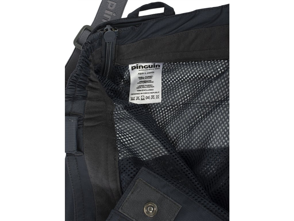 Inovované kalhoty Alpin L jsou společně s jejich sestrami Alpin S vhodné jak na sjezdovky, tak na nošení do lesa nebo na hory, zkrátka na veškeré volnočasové aktivity. Celorozepínatelné nohavice opatřené nepromokavými YKK zipy umožňují kromě stoprocentního odvětrávání také svléknout kalhoty bez nutnosti vyzouvání bot nebo lyžáků. Součástí kalhot jsou také šle, ty jsou připevněny pomocí suchých zipů, takže se dají velmi snadno odepnout. Dále je ve výbavě také pásek s kovovou rychloupínací sponou.
