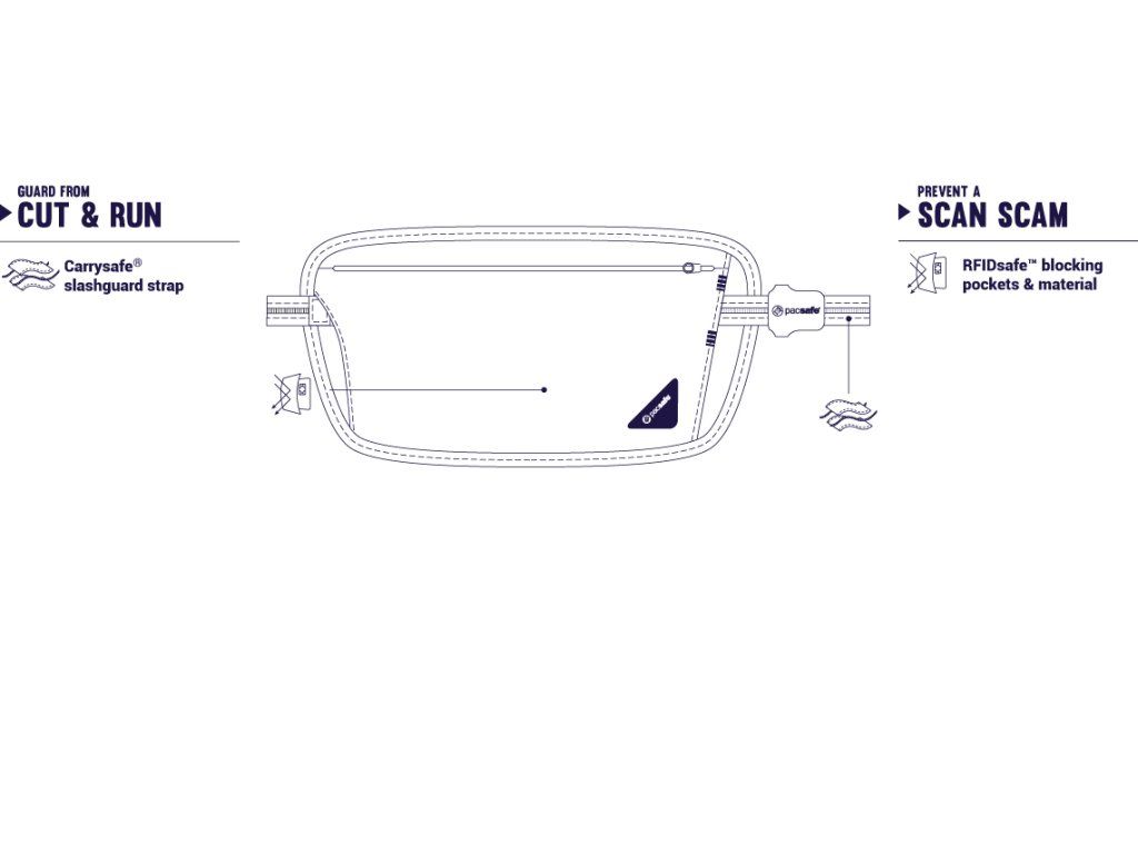 Nenápadná ledvinka, do které bezpečně schováte cestovní pas, karty, peníze i další cennosti.Pásek Carrysafe slashguard vyztužený dvěma ocelovými lanky, hned tak nějaký poberta nepřeřízne. Vaše doklady i platební karty před scannery nenechavců chrání RFIDsafe materiál.