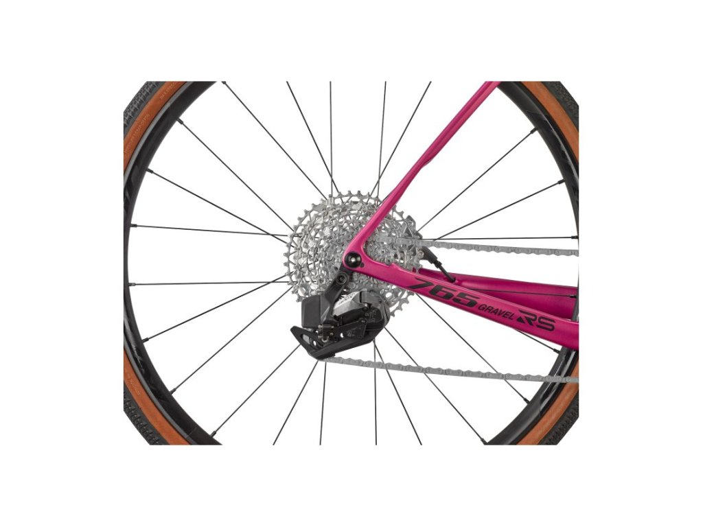 Model 765 Gravel RS Apex AXS je osazen bezdrátovou 12rychlostní sadou Sram Apex AXS a zapletenými koly Fulcrum Rapid Red 500, které jsou obuty do plášťů HUTCHINSON Touareg v rozměru 700x40.