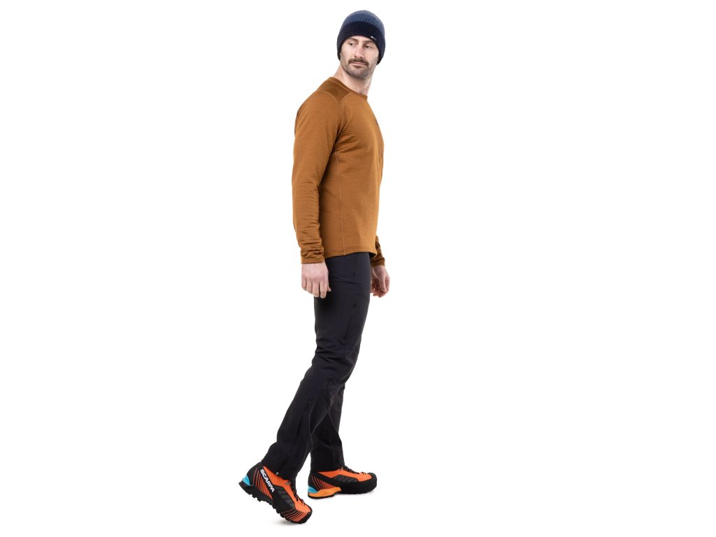 Pánská mikina APIRO MEN'S CREW je volnějšího střihu, aby byla pohodlná i jako druhá vrstva. Zároveň ovšem není příliš objemná, takže bude dobře sedět i pod sedákem nebo vrchní hardshellovou nebo zateplenou bundou. Lehký strečový fleece je výjimečně prodyšný a rychle schne co oceníš při náročných aktivitách, kde se hodně potíš. Díky plochým švům se příjemně nosí také přímo na pokožce.