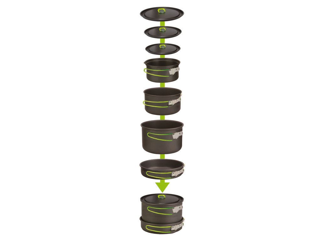 Set nádobí vyrobený z hliníku s anodizovaným povrchem.