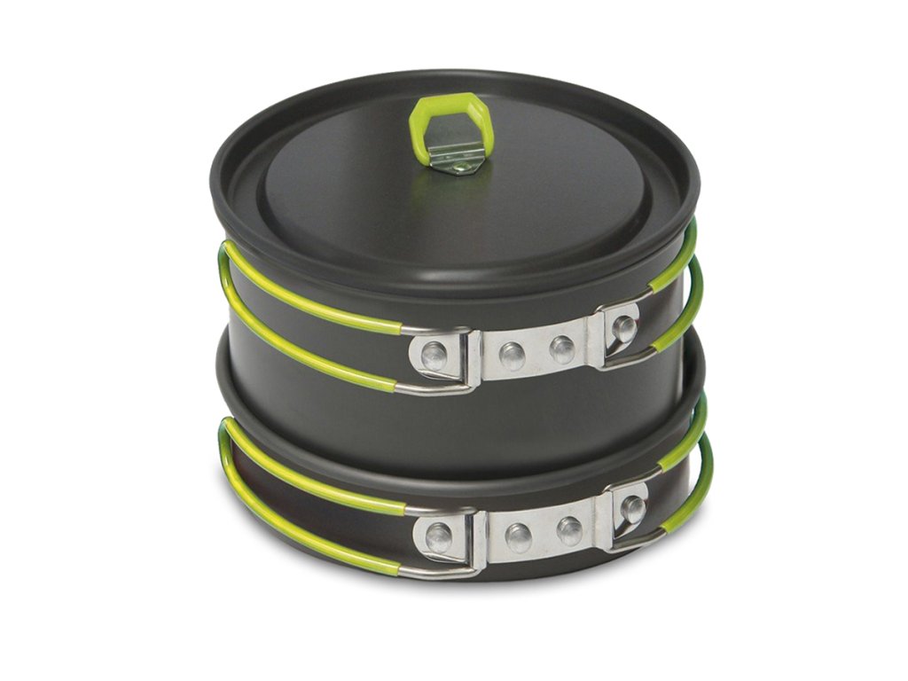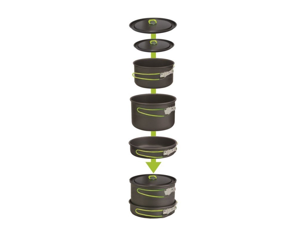 Set nádobí vyrobený z hliníku s anodizovaným povrchem.
