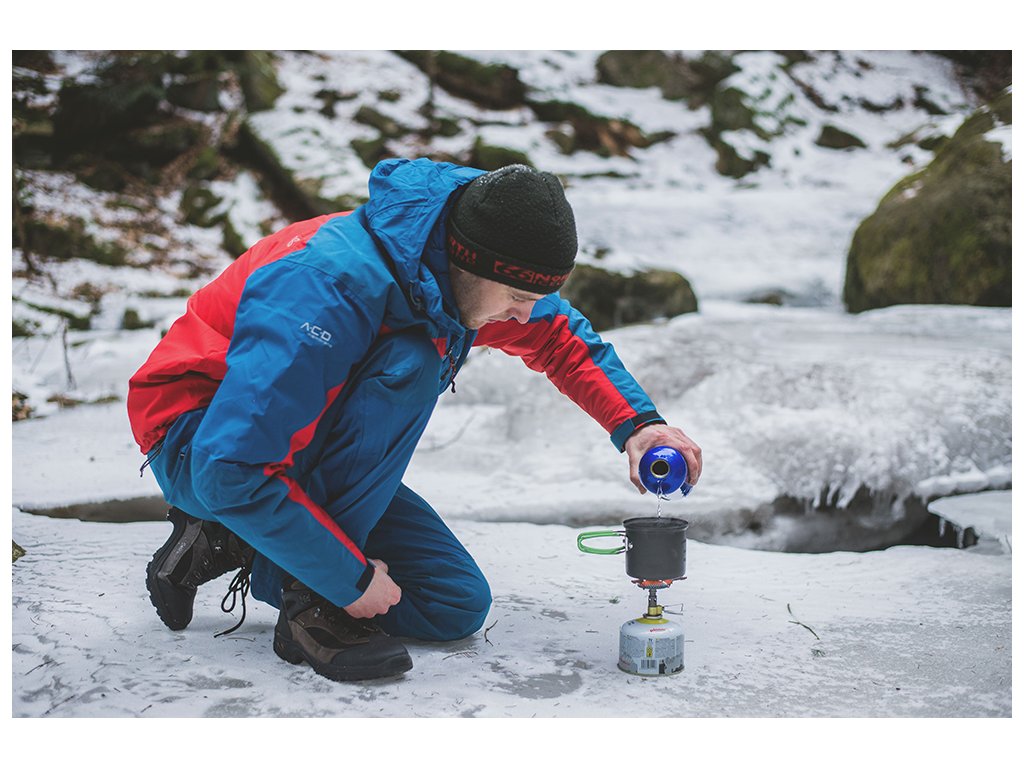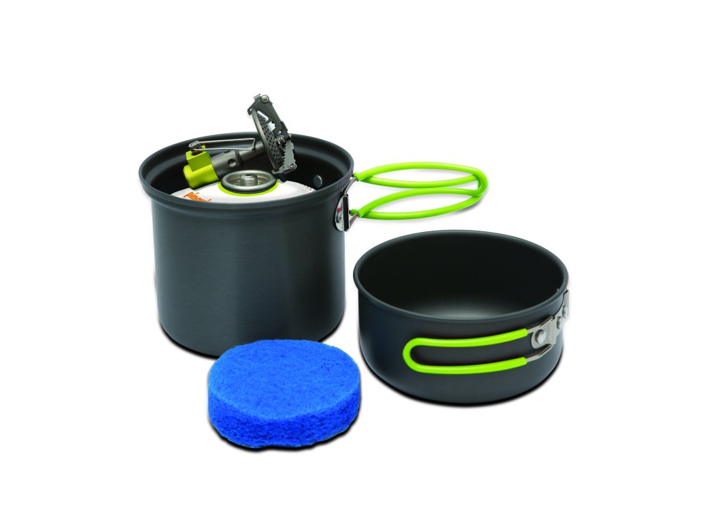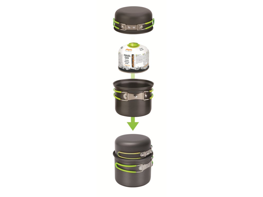 V hrnci lze pohodlně přenášet 230g kartuši, malý plynový vařič, utěrku a houbičku na nádobí. Toto příslušenství není součástí balení. Hrnec je dodáván v síťovaném přepravním obalu.