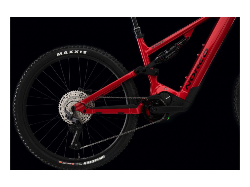 NORCO Sight A2 VLT je celoodpružený e-bike, který vám ukáže, jak vypadá v praxi e-bike s opravdu hodně velkou výdrží. Díky komponentům odpružení ROCKSHOX dosahuje kombinace zdvihů 160 mm vpředu a 150 mm vzadu, charakterizuje ho středový motor s nejlepším pohonným systémem SHIMANO STEPS EP8 ve své třídě s výkonem 85 Nm a baterií o kapacite 900 Wh. Má hliníkové provedení rámu, a díky absenci dvířek v dolní rámové trubce je rám dostatečně tuhý. Do dlouhé spodní rámovky pak můžete nasunout různě velké baterie (o kapacitě 540 Wh, 720 Wh nebo 900 Wh). Praktickou záležitostí je konstrukce rámu a atypické umístění tlumiče, které zprostředkovává místo i na dva košíky na bidony. Model se chlubí konstrukčním systém Ride Aligned™ a osvědčenými odolnými komponenty pro maximální výkon. O spolehlivý brzdný výkon se starají bezkonkurenční čtyřpístkové brzdy SRAM BR MT420 a o řazení se stará přehoazvačka SHIMANO DEORE. Stačí nasednout a vychutnat si jedinečný prožitek z jízdy.