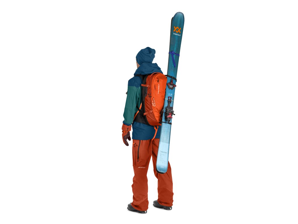 Hmotnost batohu ORTOVOX AVABAG LiTRIC FREERIDE 28 je pouhých 2590 g včetně systému. Batoh má široký bederní pás, který snadno nastavíš a batoh ti tak přesně padne na záda. Široké a pohodlné ramenní popruhy lépe rozloží hmotnost batohu mezi tvá ramena, záda a bedra. Zádový systém je tvořen vycpávkami z paměťové pěny v 6 zónách. Batoh tak obejme tvé tělo a drží pevně na svém místě při jakkoli agresivní jízdě. Celá kontaktní zóna zad je navíc pokryta praktickým softshellem, který zlepšuje přilnavost a zároveň zabraňuje lepení sněhu.