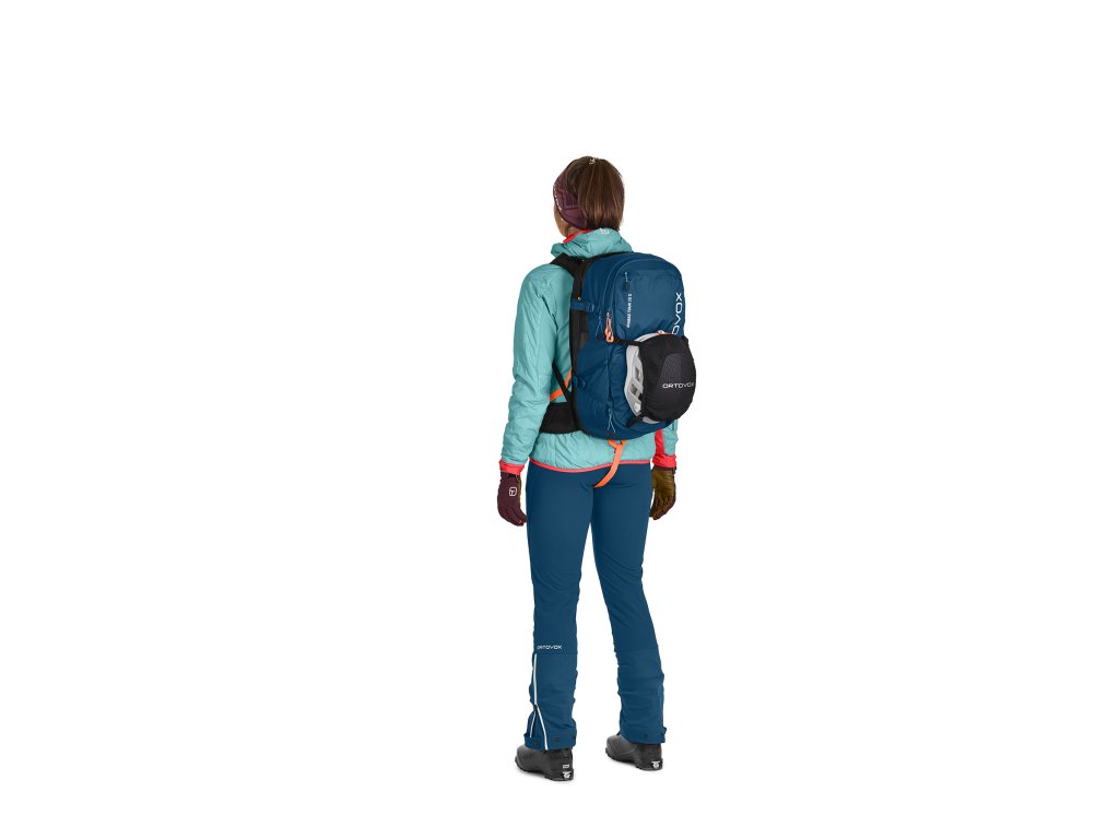 Lavinový batoh nemá žádné zbytečné popruhy a gumičky, ale pouze funkční prvky. Designéři ORTOVOX se postarali o velmi čistý vzhled i v případě, kdy na něm neseš cepíny, helmu, lyže nebo snowboard. Batoh je sice z na dotek jemného materiálu, ale použitá tkanina je extrémně odolná proti roztrhnutí a velmi lehká. U batohu je kvalitně zpracován každý detail, jsou použity odolné materiály a nemusíš tak mít obavy z hran lyží, nebo hrotů cepínu.Systém LiTRIC kombinuje výhody elektronického i mechanického systému. Jednak umožňuje vícenásobné nafouknutí na jedno nabití a zároveň je váhou srovnatelný s nejlehčími mechanickými řešeními záchranných systémů (systémy s tlakovou kartuší).